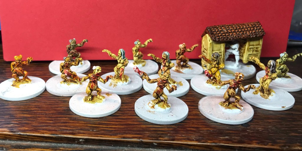 I worked on my Italian Wars, I did some work on the Sengoku Monsters and bones and the I sort of finished my Flintloque Guerrillas…I realised after taking the photo that there were a couple of bits that needed doing.