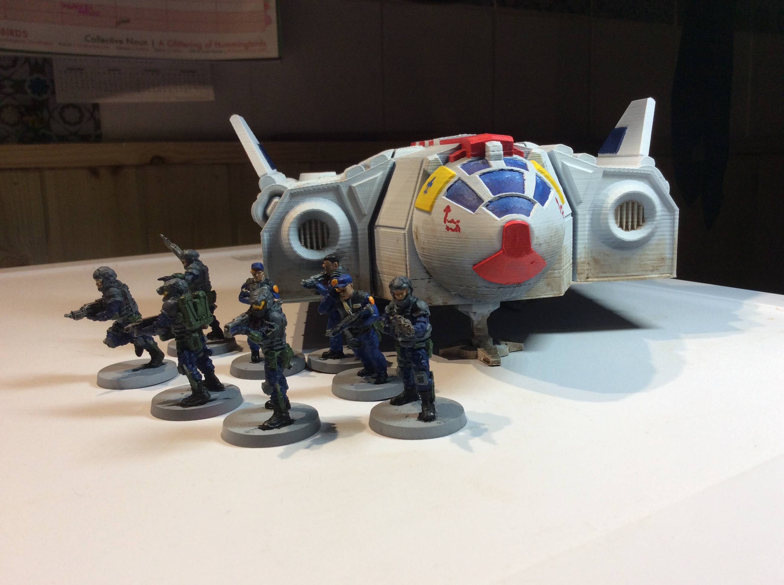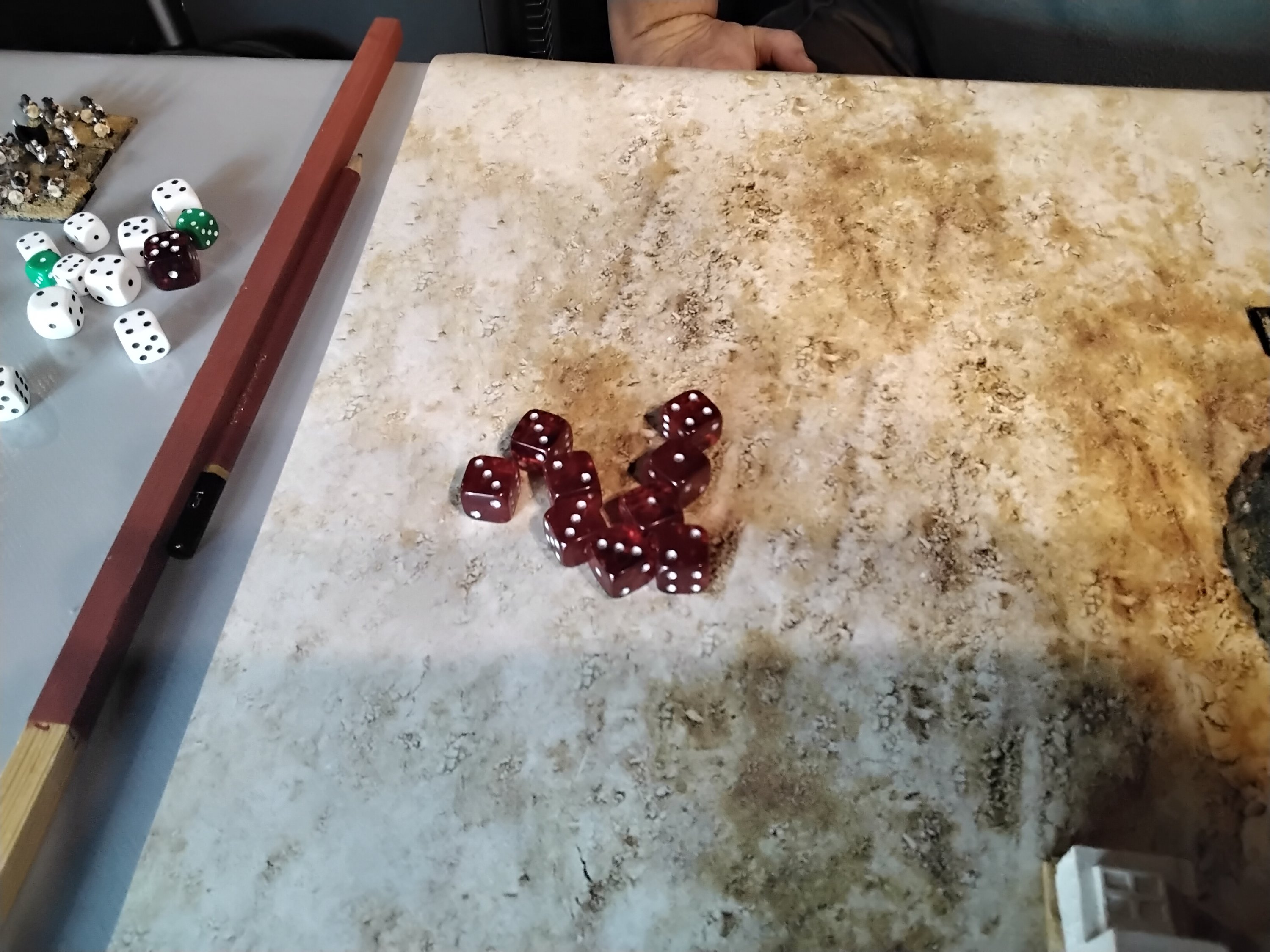My dice rolls were pretty jammy tonight and the Gatling failed to fire or move only once… I have a confession to make. I was hitting on fours, it was only when I went to tidy up that I realised that I was reading the Gatling stats from the last game. So a big apology to Joe for being a cheating B*stard. I should have been hitting on a five.