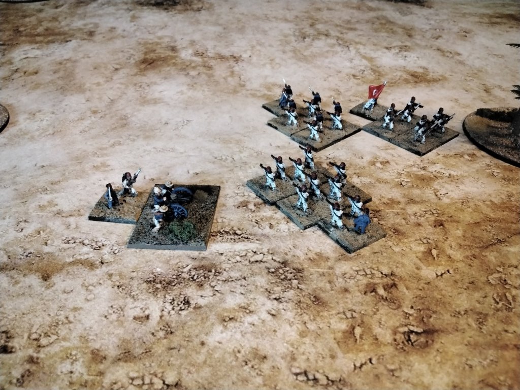 So from left to right some really useless Egyptians who were both poor shots and unenthusiastic. Next are some okay ones, but their officer was short sightedness couldn’t shoot beyond close range, we then have the Gatling gun led by a brave chap and finally the naval ratings and the Sudanese.