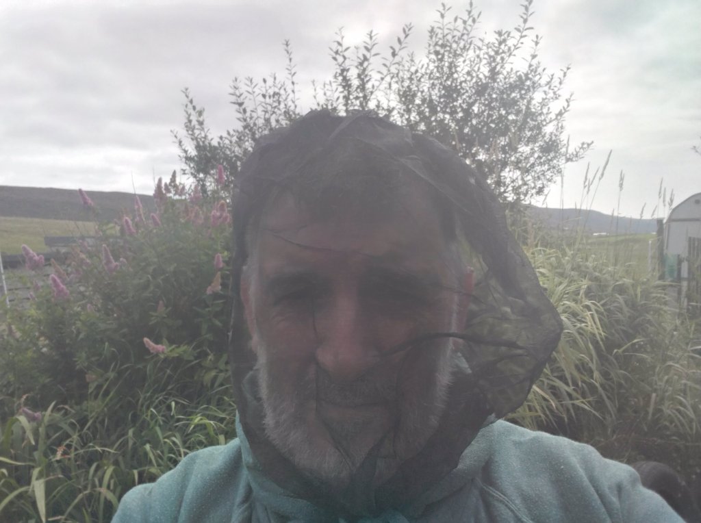 Today was another midge day, we were putting up and electric fence and it was a nightmare until a breeze got up. On the upside I still have my fetching veil