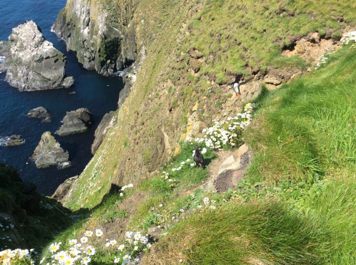 We have had a house guest since last Friday, today was his last day and he really, really wanted to see some Puffins… he had been to Sumburgh the day he arrived, but they were all out at sea. Today was a nice sunny day… 22.5 degrees which was a bit warm for us hardy northerners 😂. We took him down to see if the blasted birds had come back, luckily a good dozen or so made an appearance.