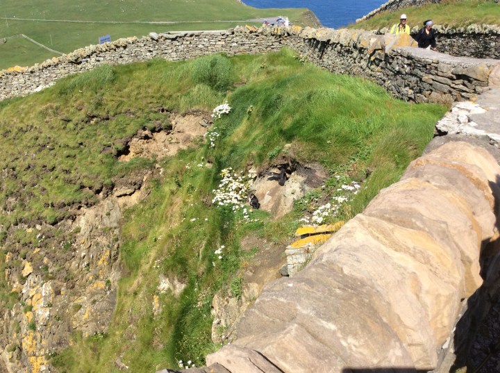 Being a bit exposed on the Southern point of Shetland, sometimes grumpy German gunners would vent their spleen as they flew past…. you can see the effect here…