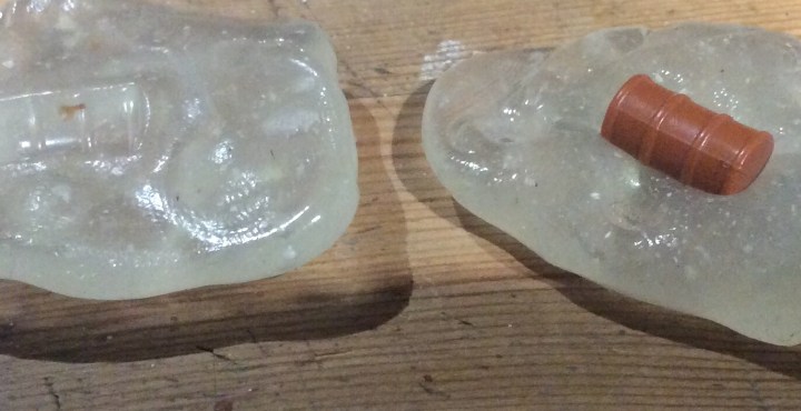 Whilst having a mooch for things I came across a nice little oil drum, this fits these cars really well. So I sought out my reusable moulding stuff and made a simple mould. This stuff has been used with Milliput and unfortunately has left a nasty residue. And over time this has worked into the material. It still seems to work though.