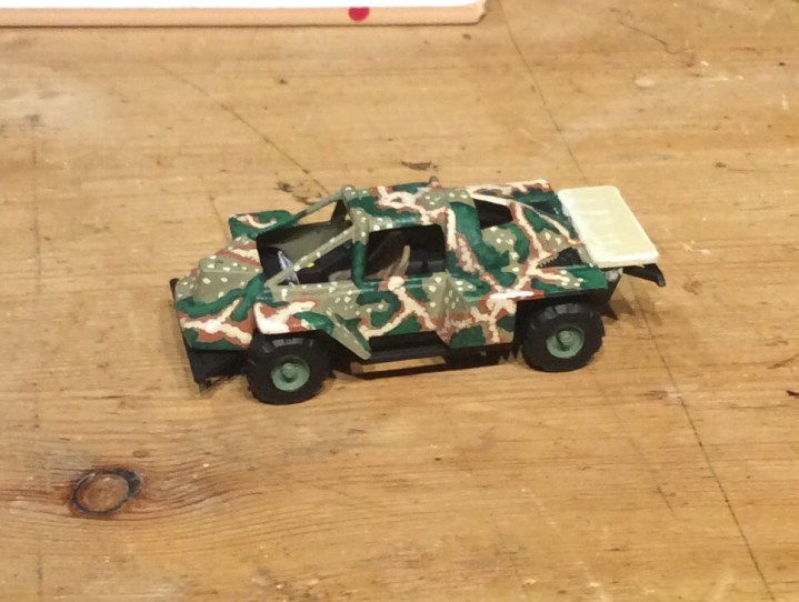 I added some chain to the front of the Renegade as well as a hefty aerial, a rail and some metal gubbins on the roof.