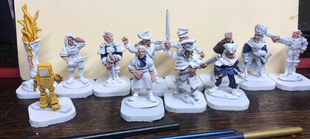 This evening I decided to try and get some painting done on the 28mm Flintloque miniatures. I got a bit further than I thought I would… a couple are close to finished…