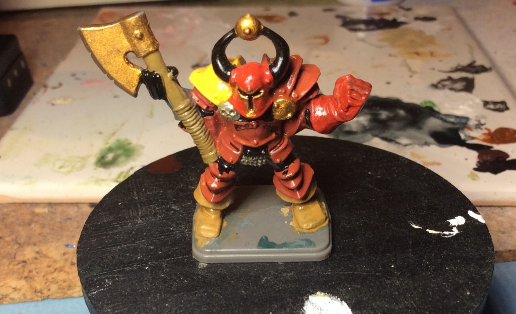 I also had a jolly good look for another Chaos Knight to paint up, but sadly he was nowhere to be found, and in hindsight I actually think that he was already painted… in black armour, from what I remember. Anyway I had a rootle through the HeroQuest box to see what I could find and decided to have a go at these three. Sadly nowhere near the one painted years ago, but at least a similar style.