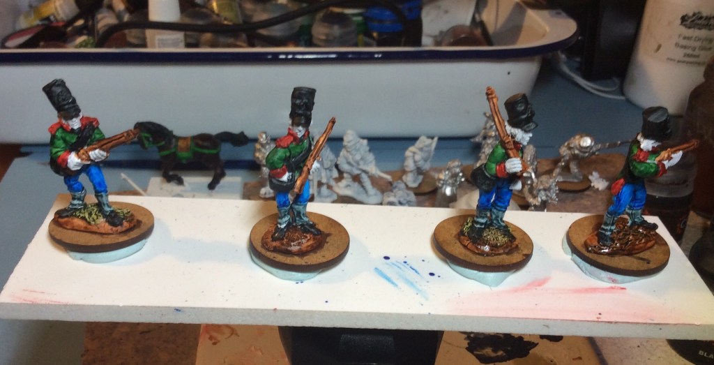 These chaps need their boots, straps and shako done black. I will get on with that tomorrow. Whilst painting these chappies I decided to watch the film Assassin’s Creed, really wish I hadn’t what a load of confusing tosh. Not sure what to watch tomorrow, but anything has to be better than this. Now I really enjoyed Tomb Raider and Prince of Persia and various other game films but this was just way too confusing.