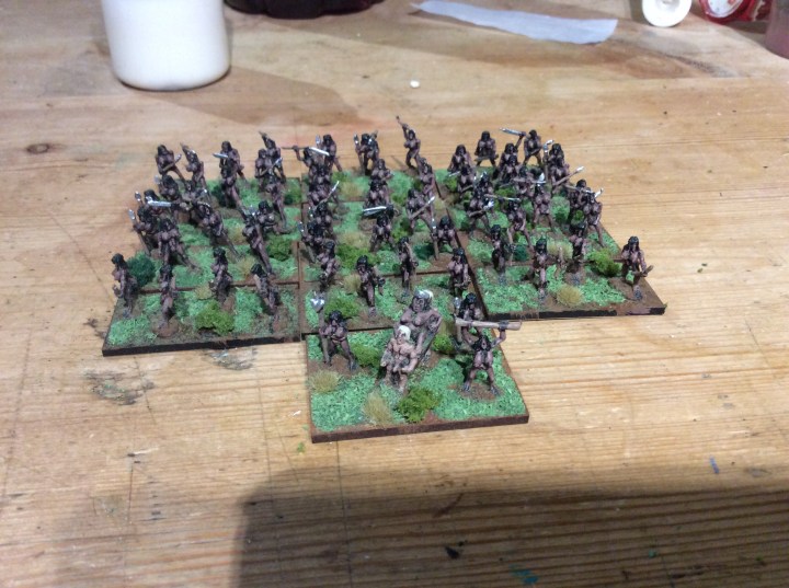 I was right about the bases being finished would help distinguish the figures, but I think I am going to repaint all of the spears etc something like a bone colour to give a better contrast.