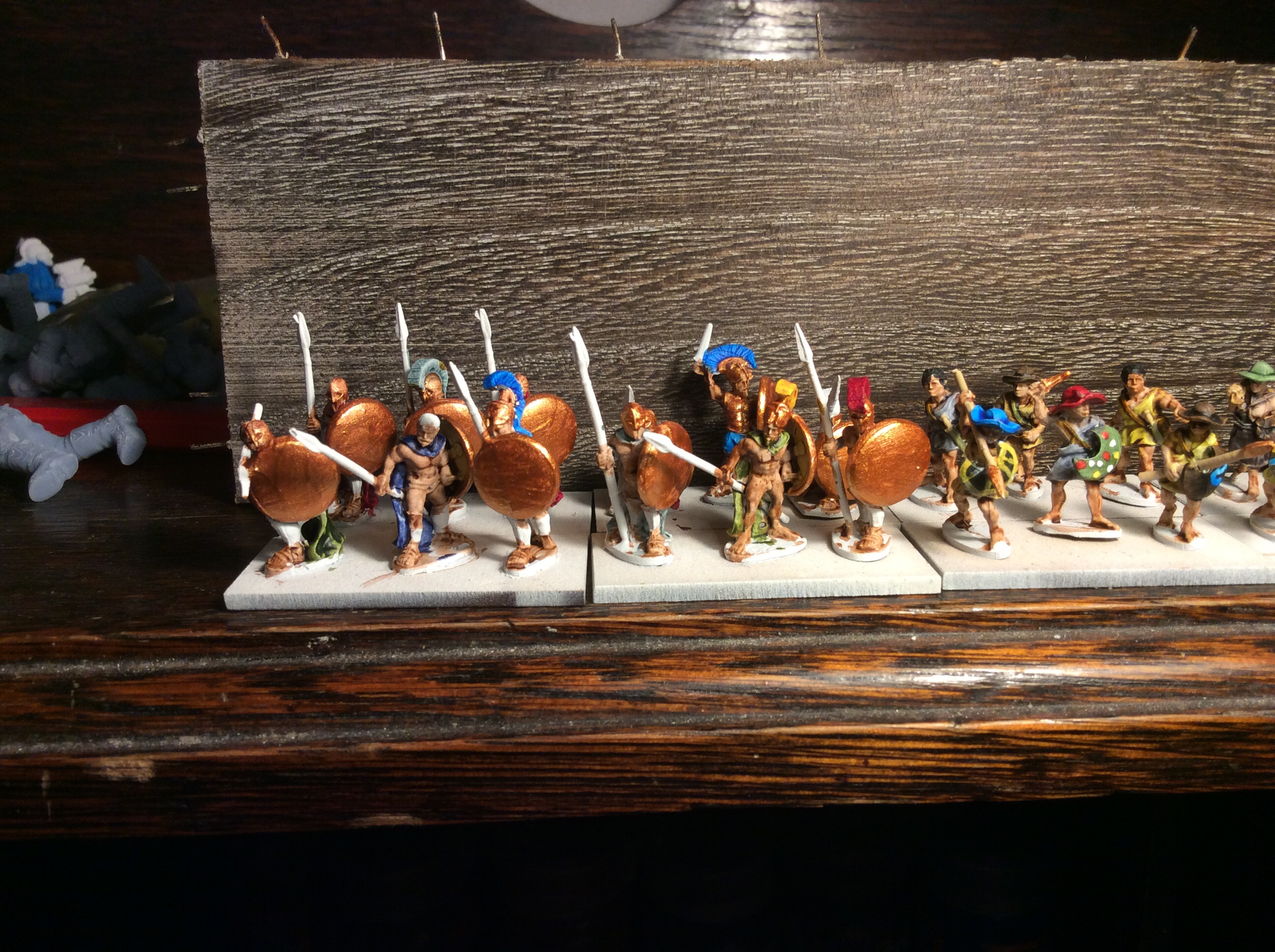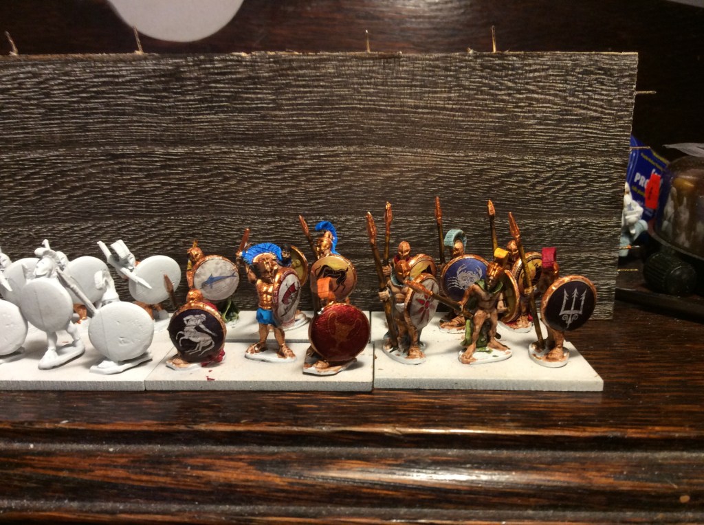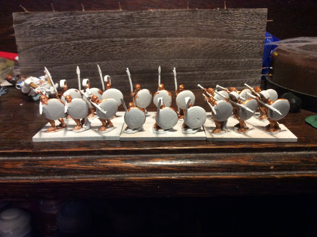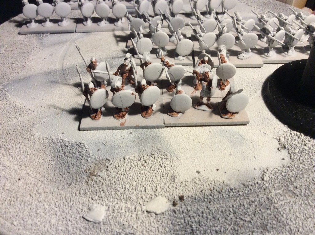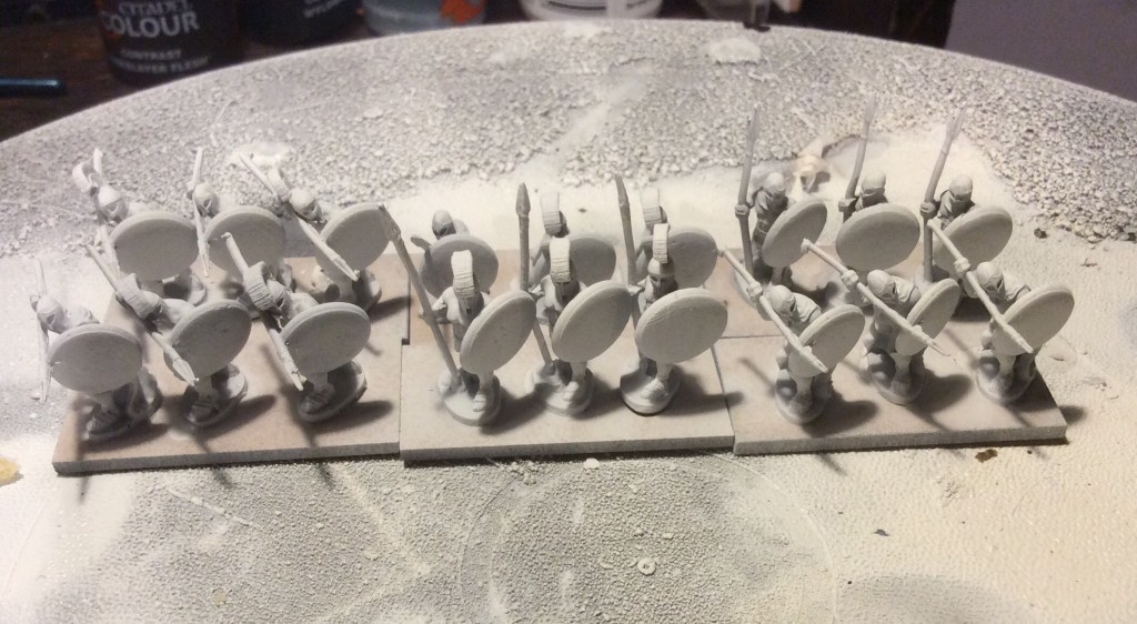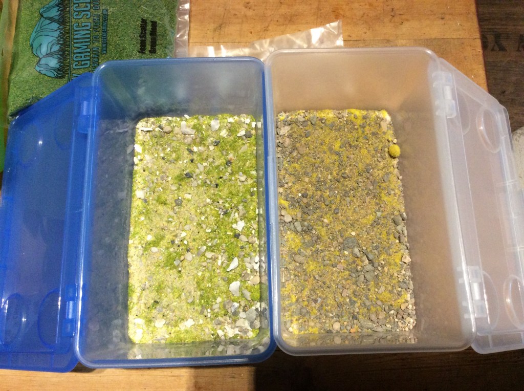 So tonight, I followed advice and mixed the two Mediterranean base ready ranges together, gave them a sieve and then got to work on the bases. That is them pretty much done apart from some tufts and some varnish (oh a one base need their shield backs painting!).