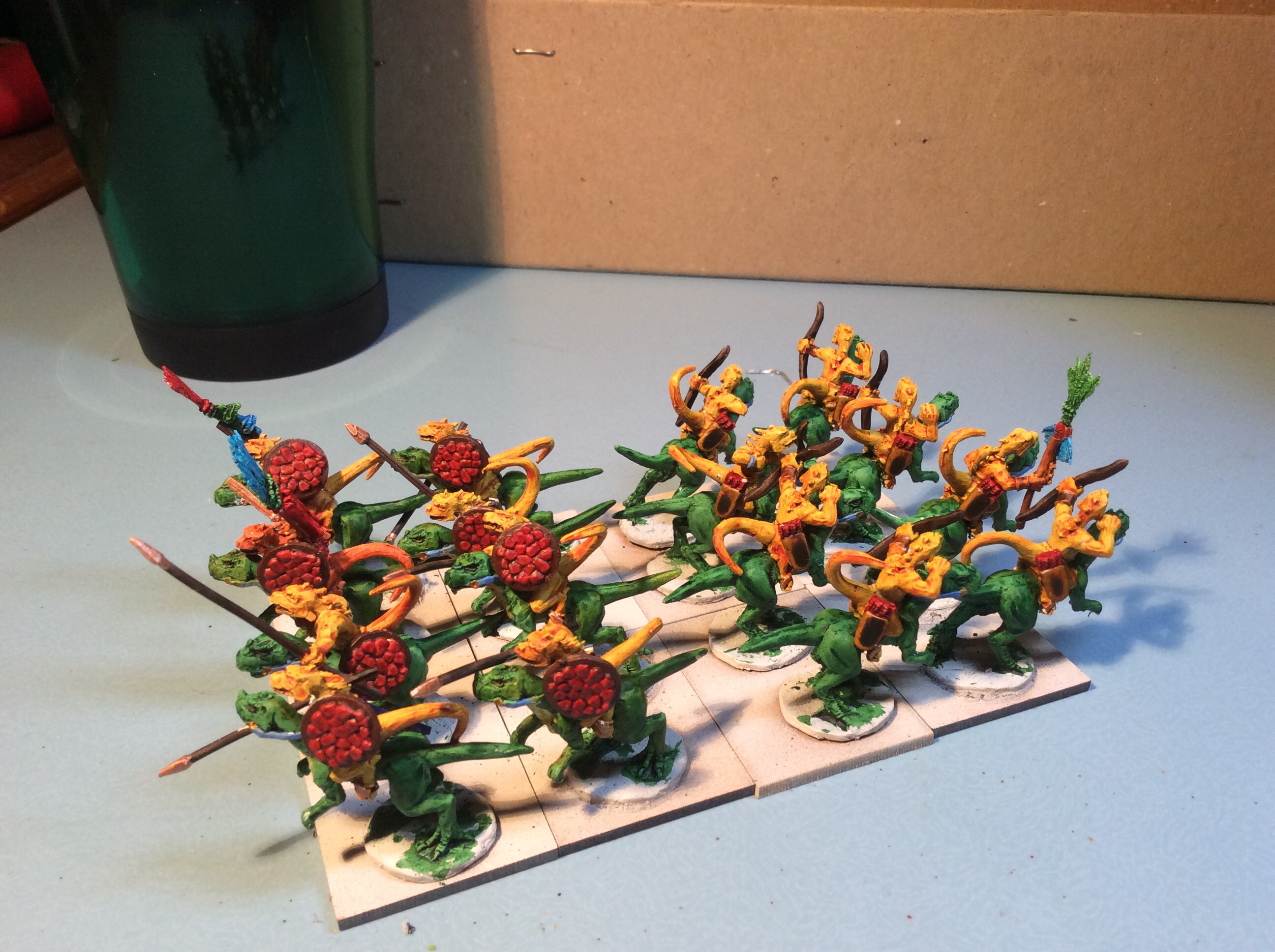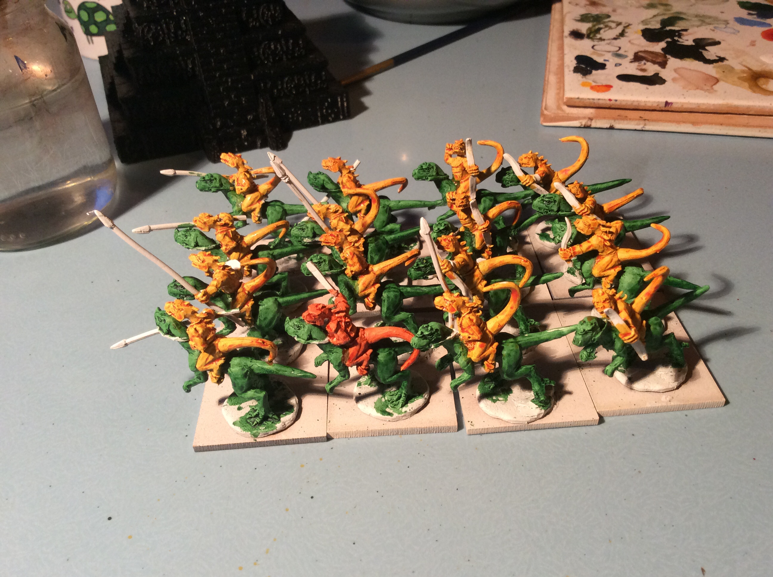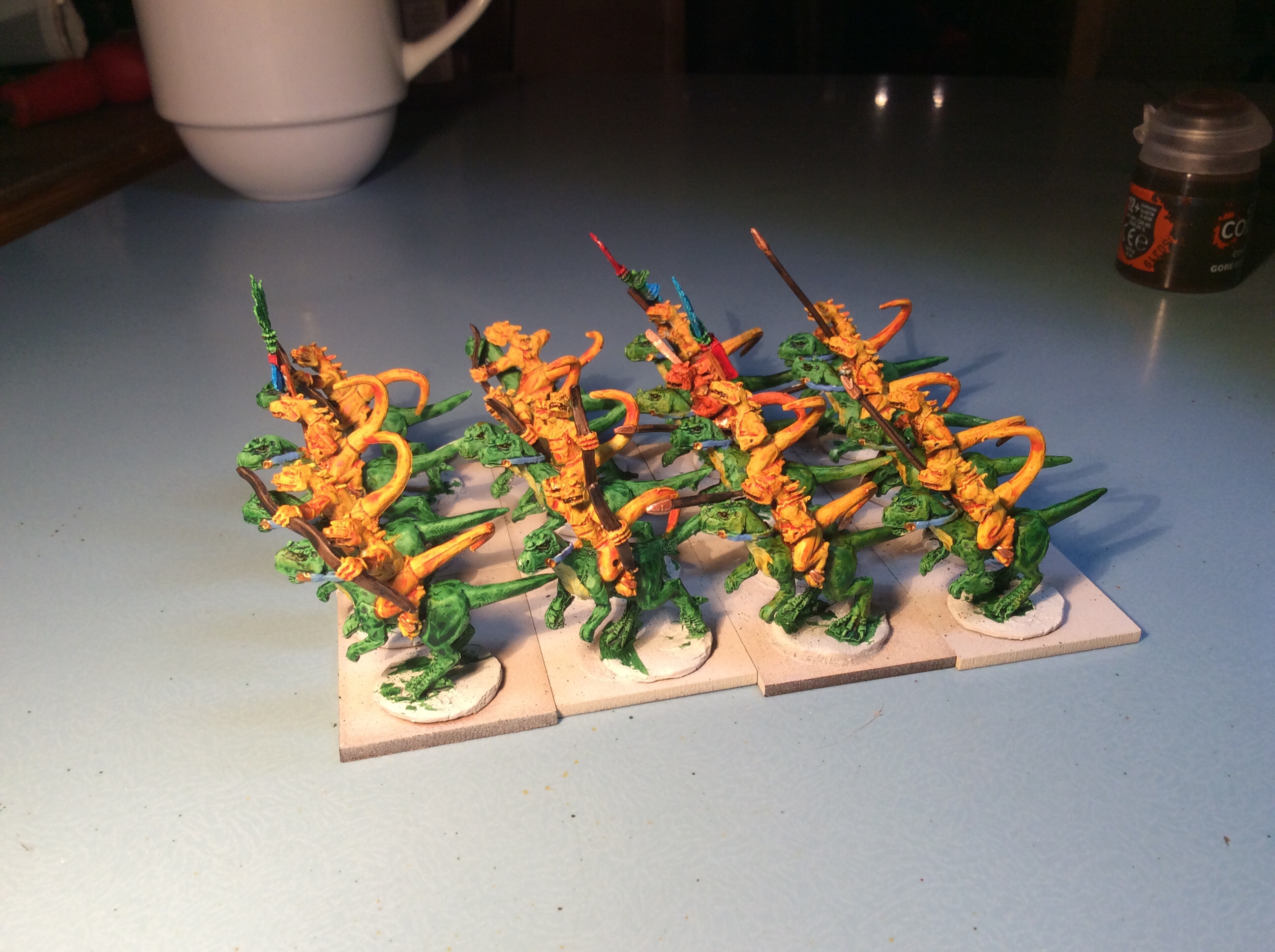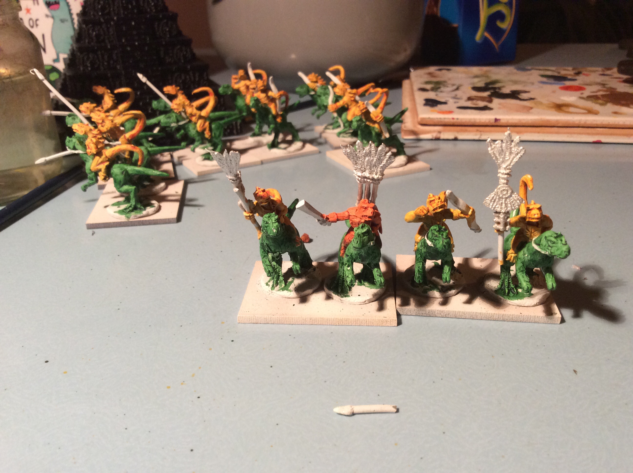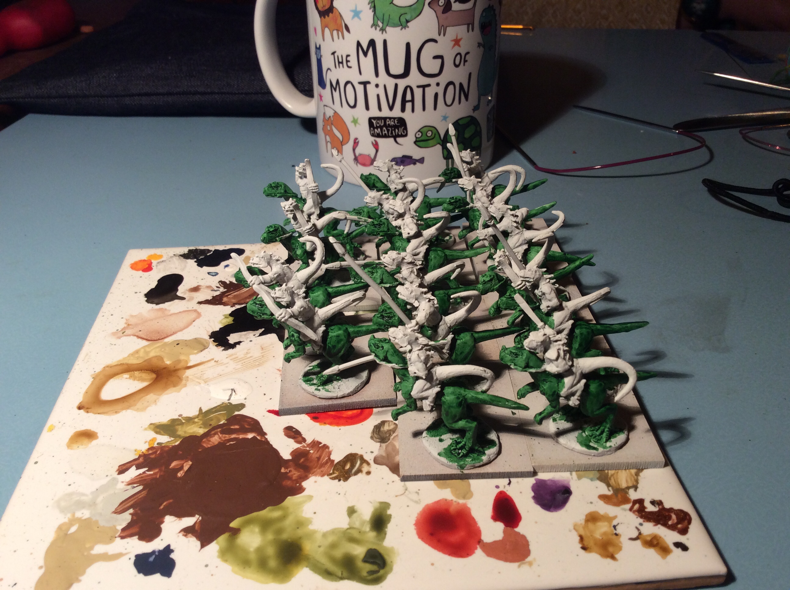 Eventually after a lot of swearing and super glueing myself to miniature Lizardmen I got there!