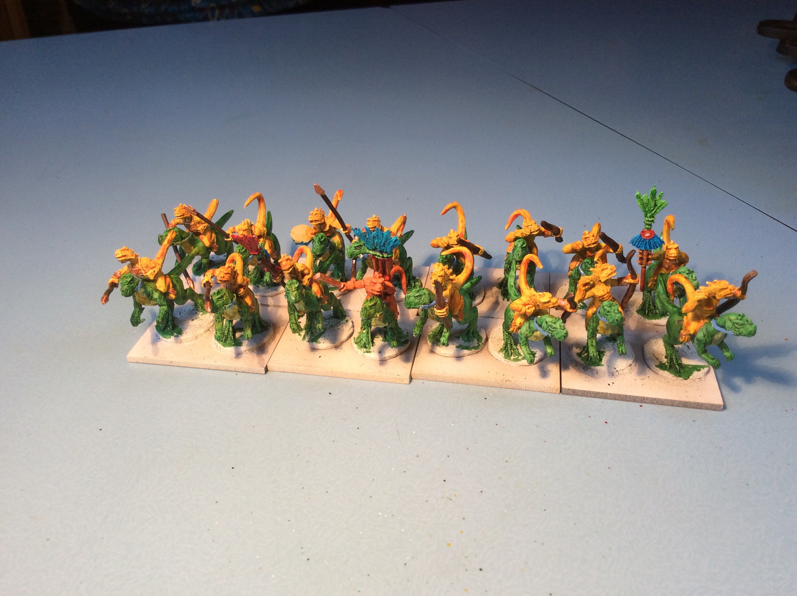 Battle Valour Games do a whole host of races, but because of the problems with these and then the big beastie, it has kind of put me off. I could ask Martin to have a look at some of the others, but right now I want these and the Aztecs finished…