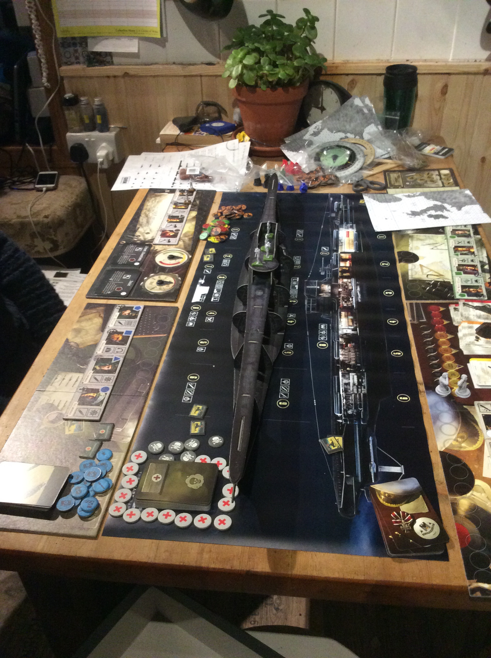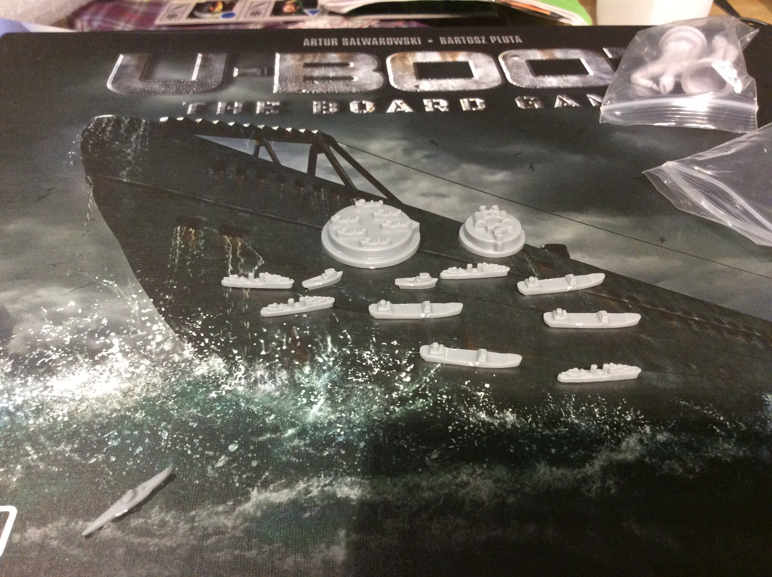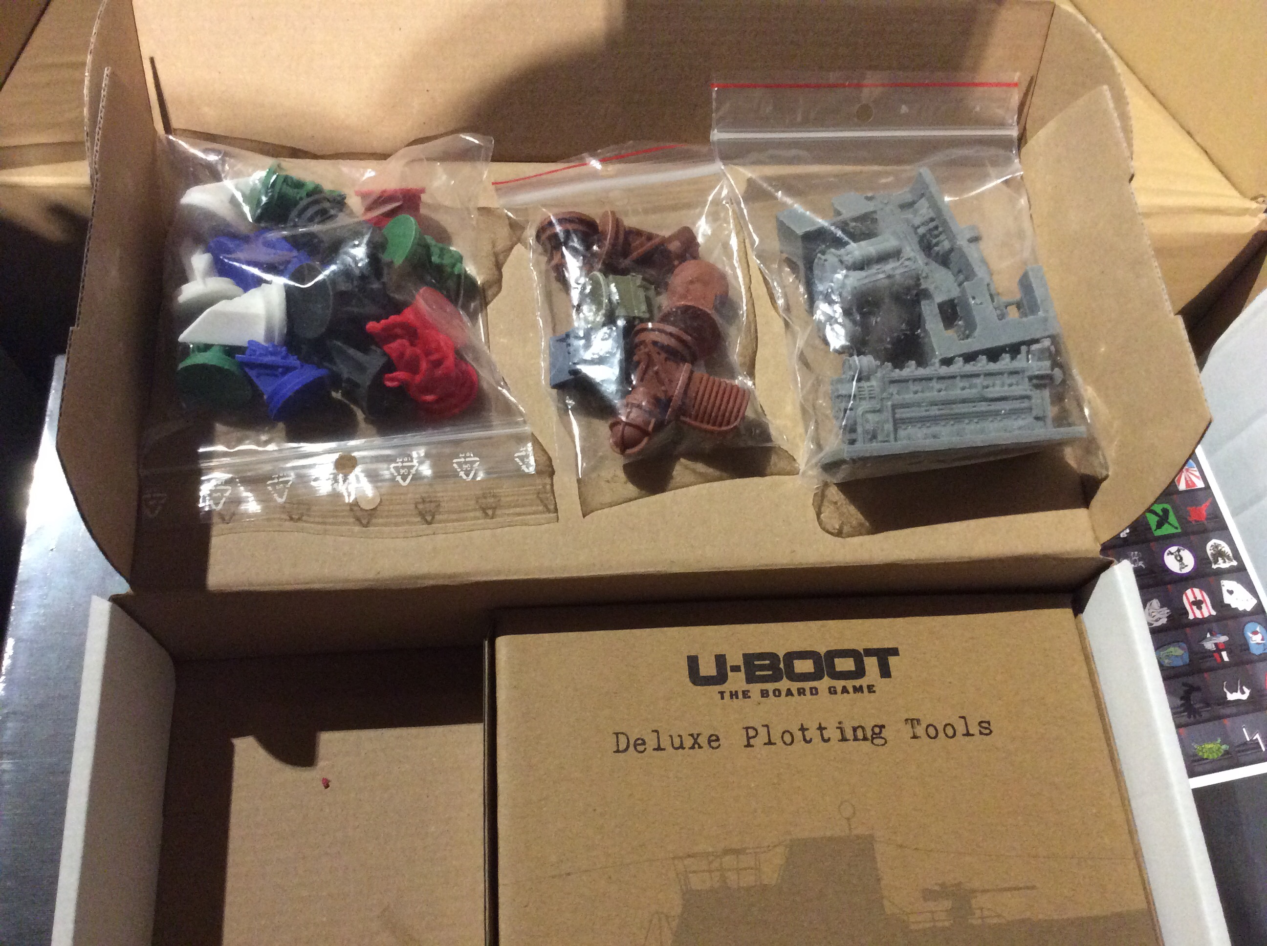 I also got a plethora of Kickstarter goodies… resin parts for the sub as well as equipment and condition tokens. These include leaks, fires etc.
