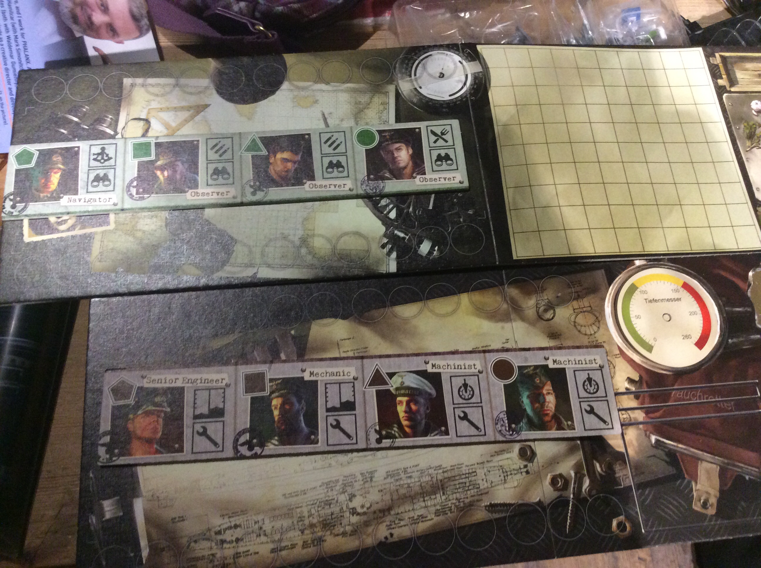 Each player gets a baseboard and crew roster board, this is double sided to show first and second watch.