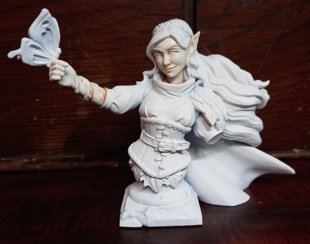 I need to highlight the orb and tidy up a few areas on Mizzy. After two print failures on the warlock bust yesterday, I decided to do the supports myself. Today was a success!…Ahh the joys of 3D printing!