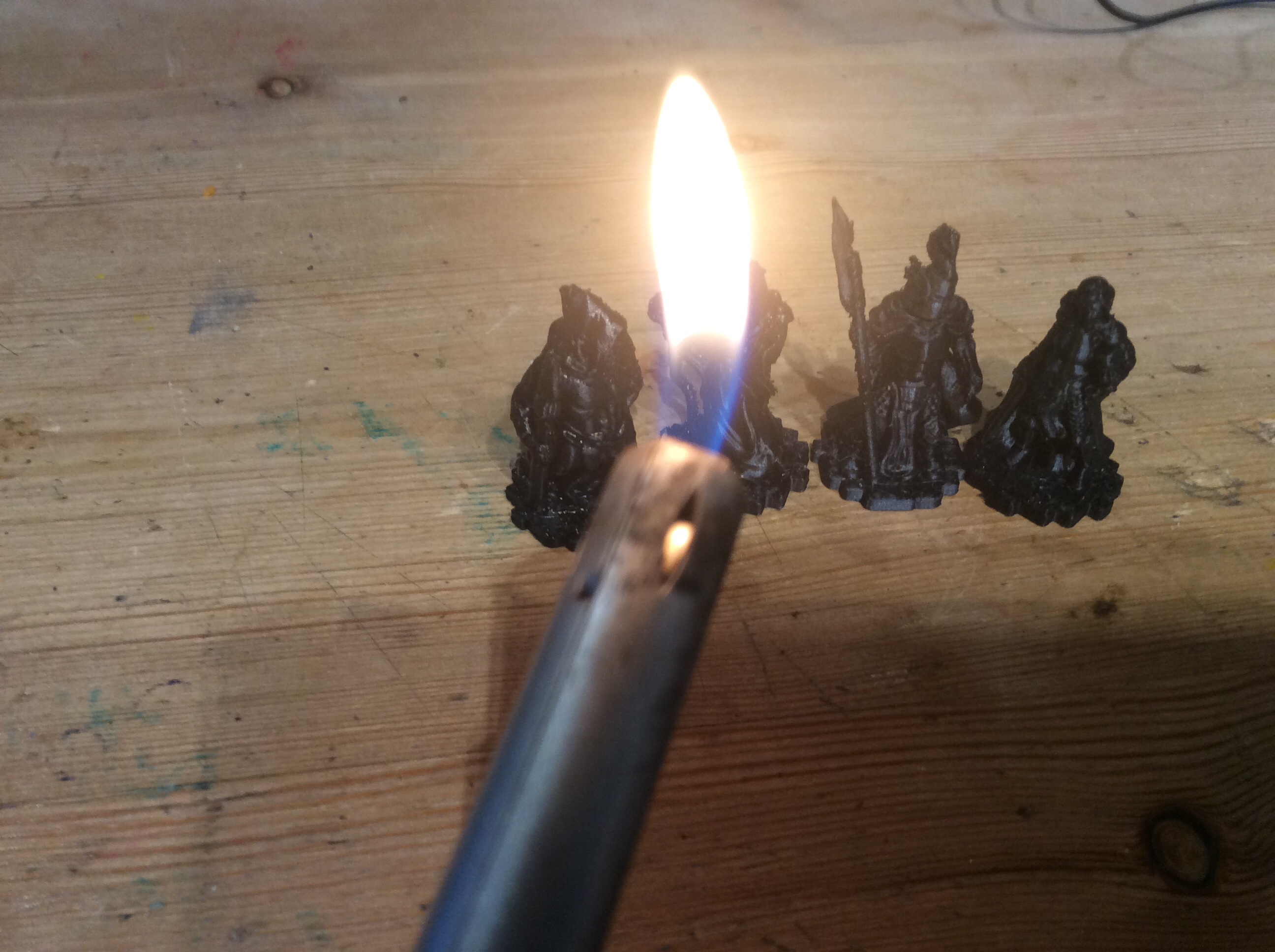 Still a bit of clean up to do but a whole lot better than spider web central. They look a bit wet as I dunked them in cold water to stop the wobbly weapon syndrome.