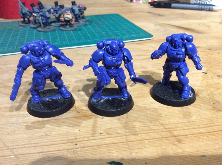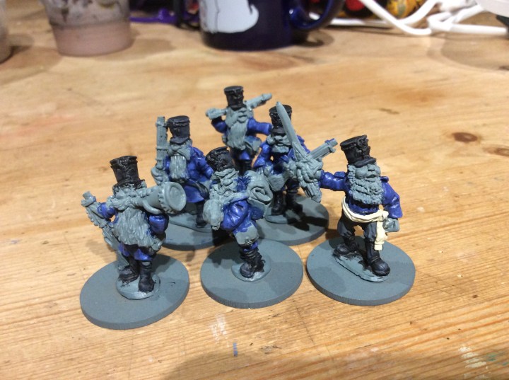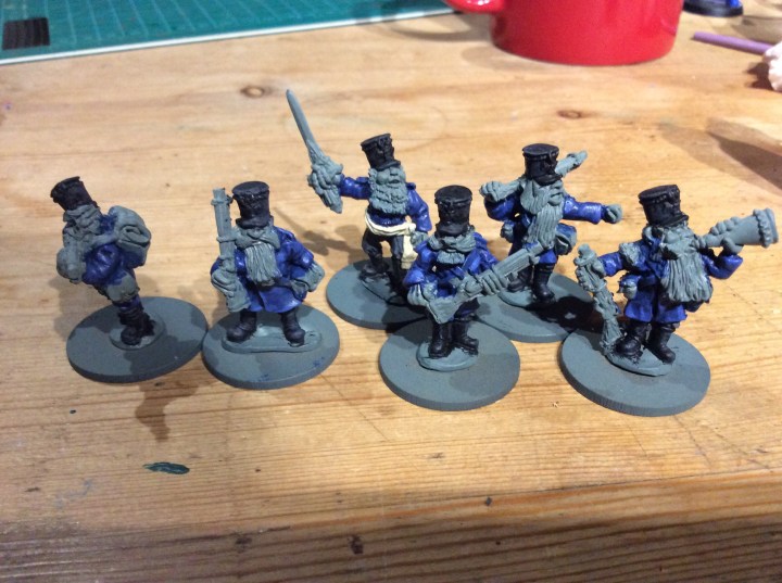 I am quite pleased with the Blue highlights on most of them apart from second on the right, it looks a bit weird. I will try and remember to sort it out tomorrow, as he is the one that had only one unpainted epaulette I don’t rate my chances of remembering to tone down a highlight.