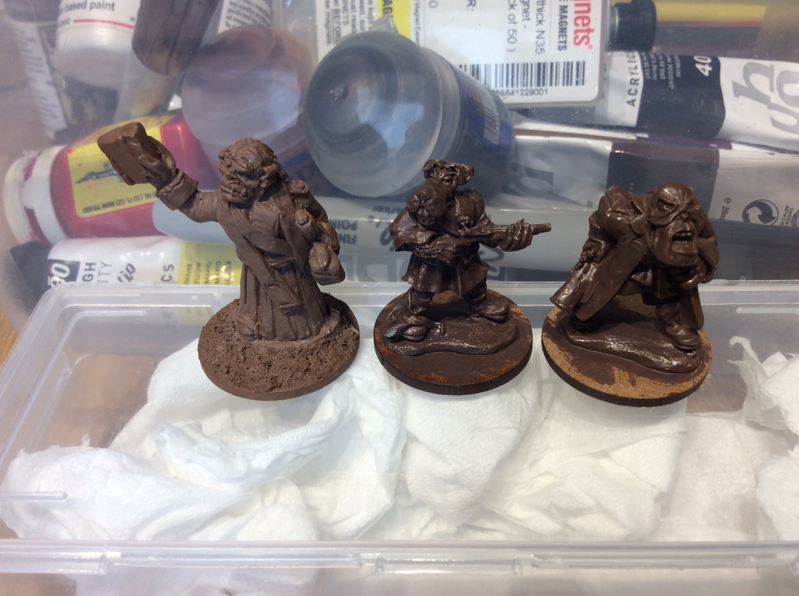 I am really enjoying painting these. Not sure why I like them so much, probably because they are so full ofcharacter. The orc in the raincoat makes me think of him standing in the rain. Stuck there with a look of resignation on his face.