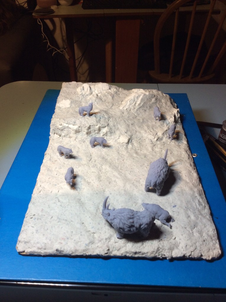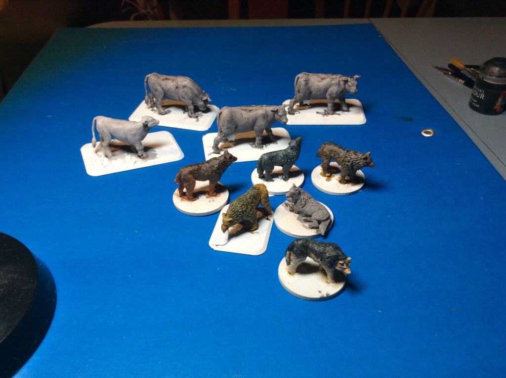 I did splash some paint around this evening, I got some more on some wolves and started making the cattle less white…