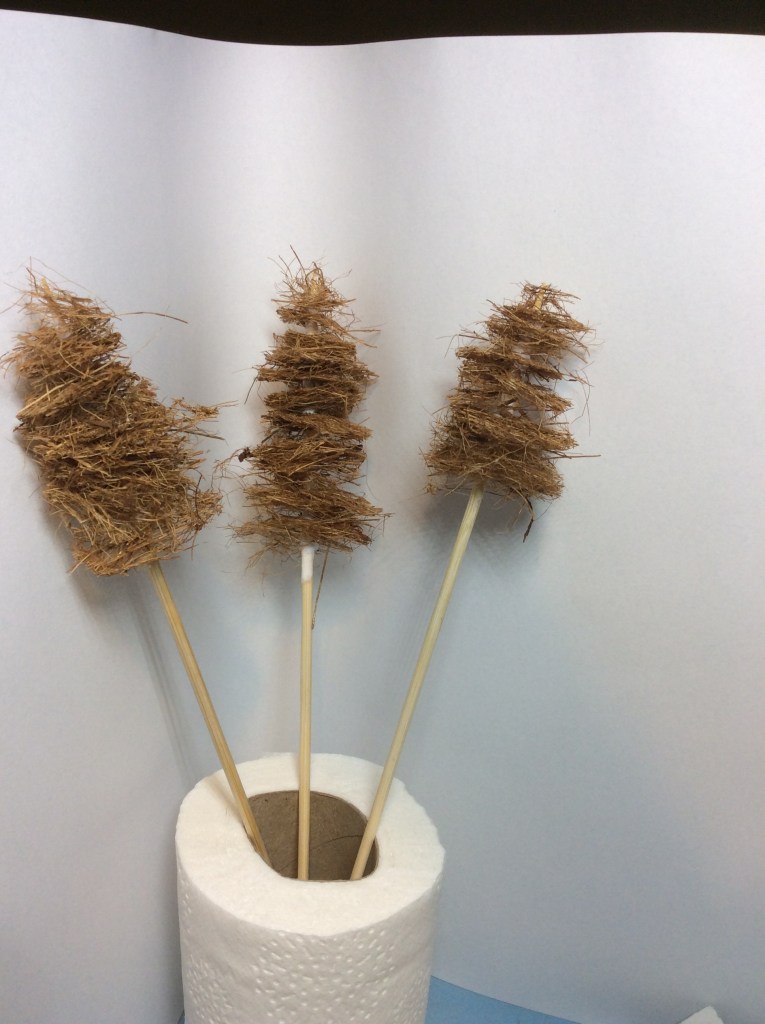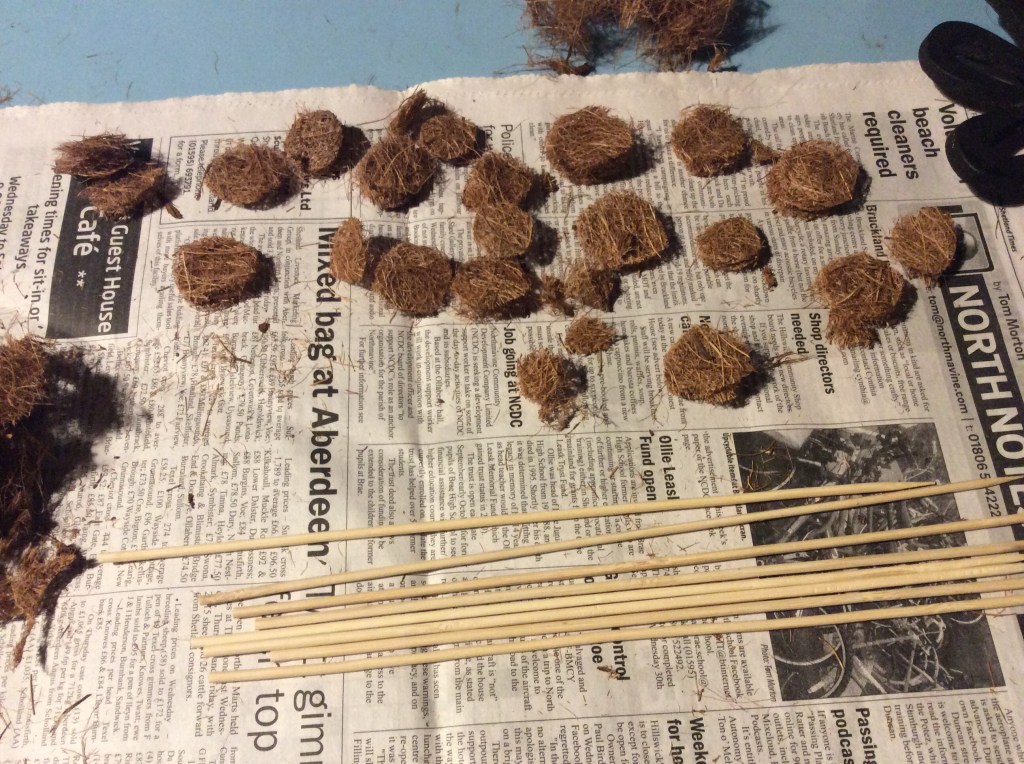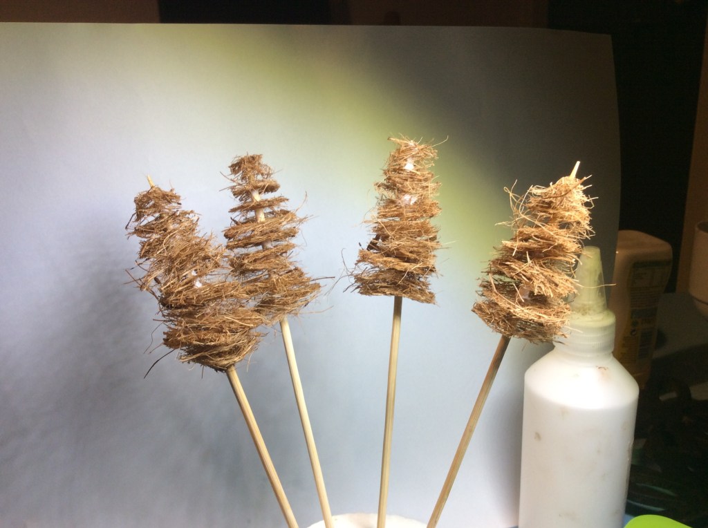 So, as I said, I decided to make some pine trees, or at least start making some pine trees using some coconut matting planters that I bought for a quid each in Poundland. These vary n thickness and also in glueness some bits are like solid frisbees and other bits falling apart, but it is indeed true.. ‘You get what you pay for’.