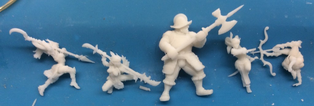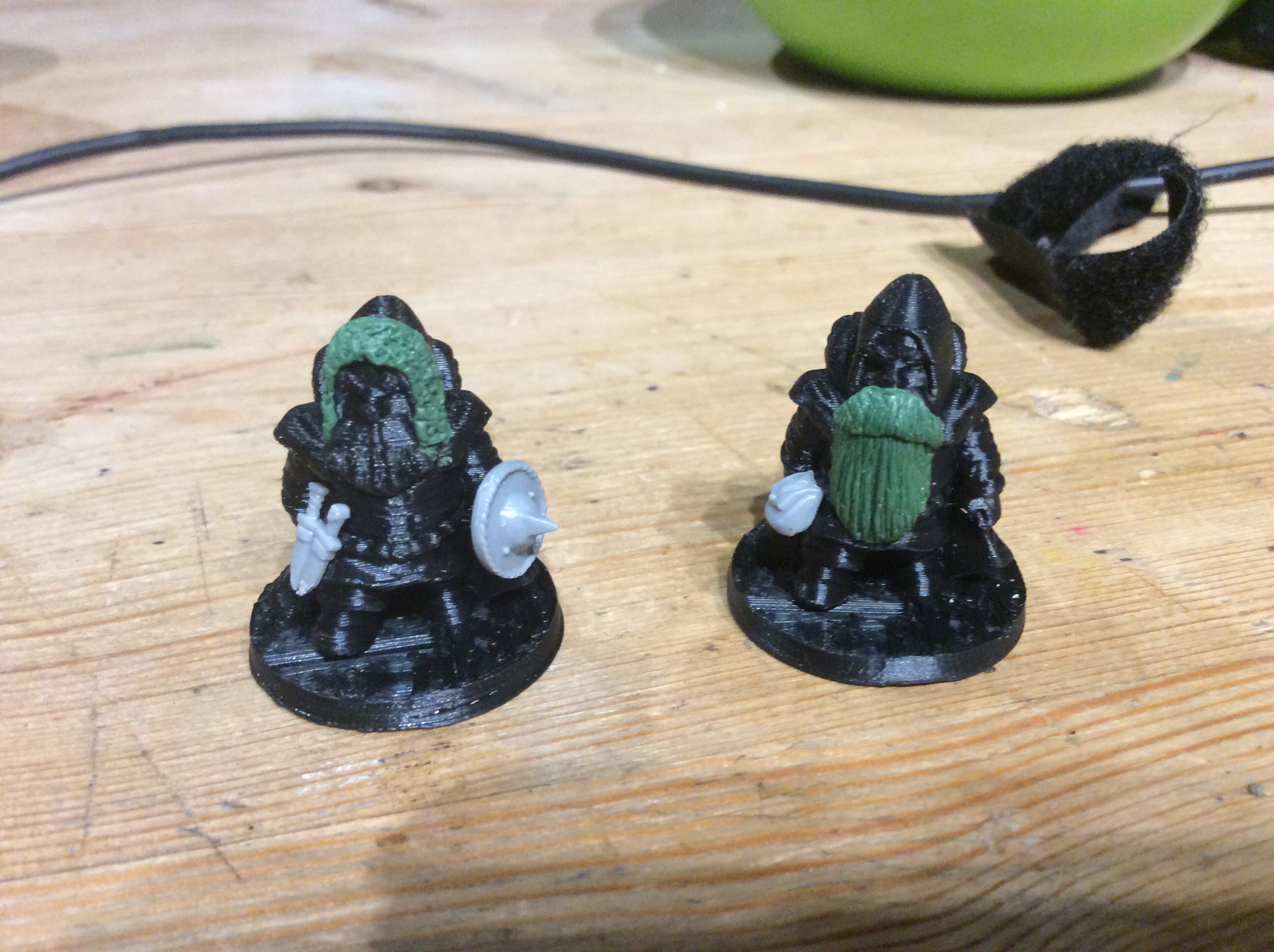 I also did some simple work in Meshmixer to remove one ogre head and replace it with another. Luckily the designer had made it an easy thing to do. Well okay it took 25 minutes of YouTube viewing before I could manage it…. but the hard work had been done by them. I also shrunk down Iain Lovecraft’s Fey Amazon’s to 75% original size. This fits in better with the Dwarves and Imperials