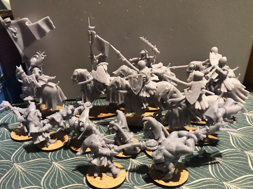 Well this afternoon I finished the knights. I decided on the maroon/purple for the white bits. I wanted to add a brighter colour to give them a bit more oomph. I had originally thought to go with red, but I reckon I chose the correct colour. you can see the one I was thinking of to the left of the second photo.