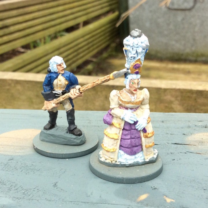 An Othari aristocrat and a hobgoblin miser. These are full of character, the Aristo is wafting his, no doubt perfumed, handkerchief whilst the miser is writing something down in his notebook.
