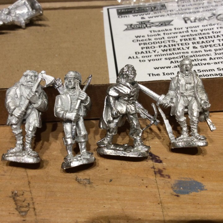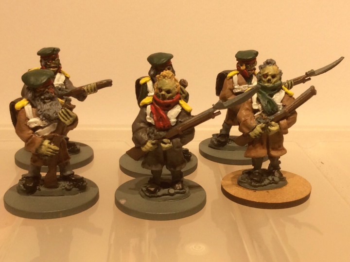 Below the zombies are a selection of Ferach troops from the Witchland’s campaign. These poor souls are wrapped in blankets and heavy coats to keep out of the cold. I will be painting these up for my mates birthday present.