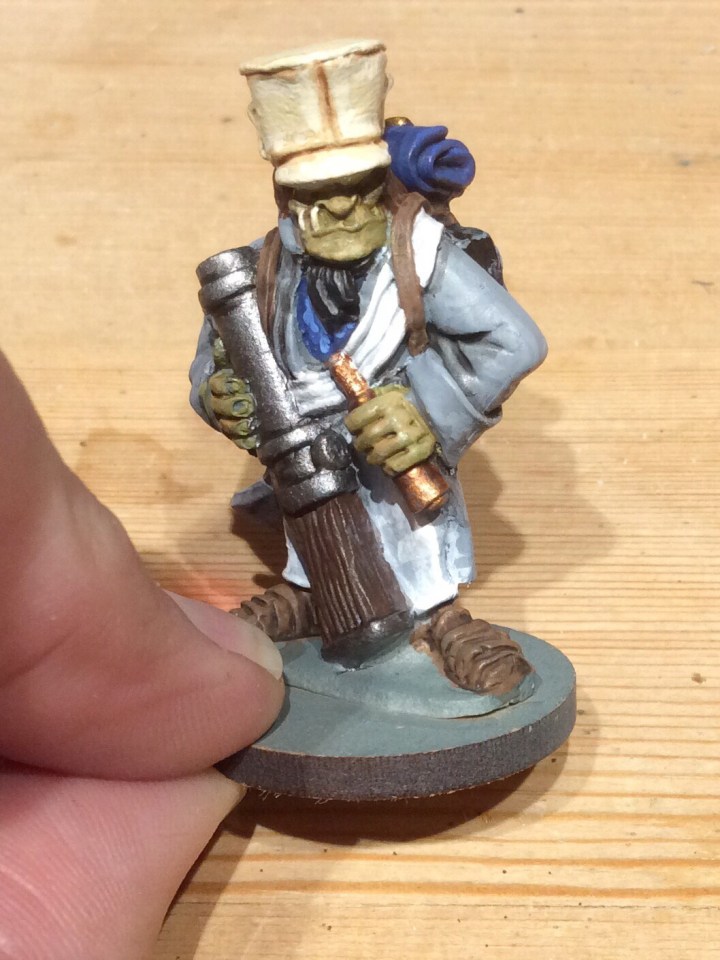 He is a lovely figure. Full of character. He is armed with a hand cannon and trust telescope. He is made from resin so super lightweight. I spent a lot longer on this one than I have with a lot of the other ones.