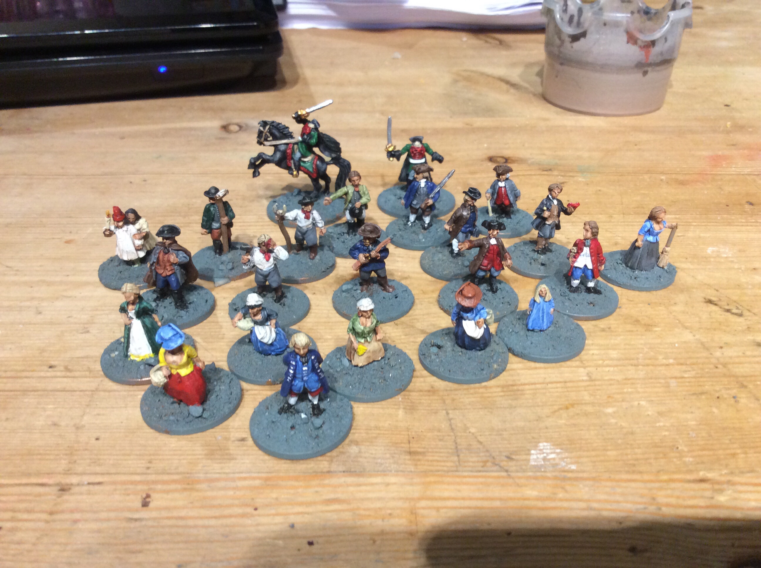 This lot is for smaller, skirmish type games. And for that reason at the back we have Nathaniel ‘Natty’ Bumppo (no wonder he wanted to be known as Hawkeye), Chingachgook and Uncas. The bag next to them is full of civilians, so finding an Alice and Cora Munro shouldn’t be too much of a problem. I have a fair few woodland Indians so Magua shouldn’t be too much of a problem.