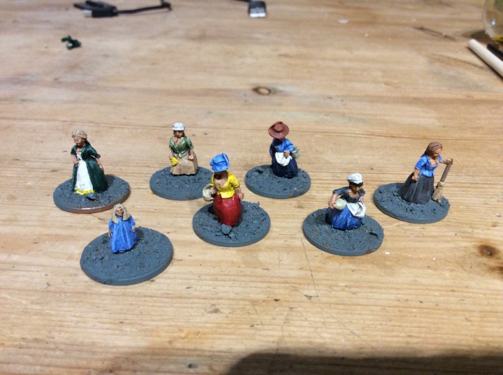 Here we have the remaining figures. Two agricultural workers and a blacksmith. A couple in their night clothes a member of the militia and a couple of gentlemen of a nondescript employment.