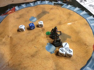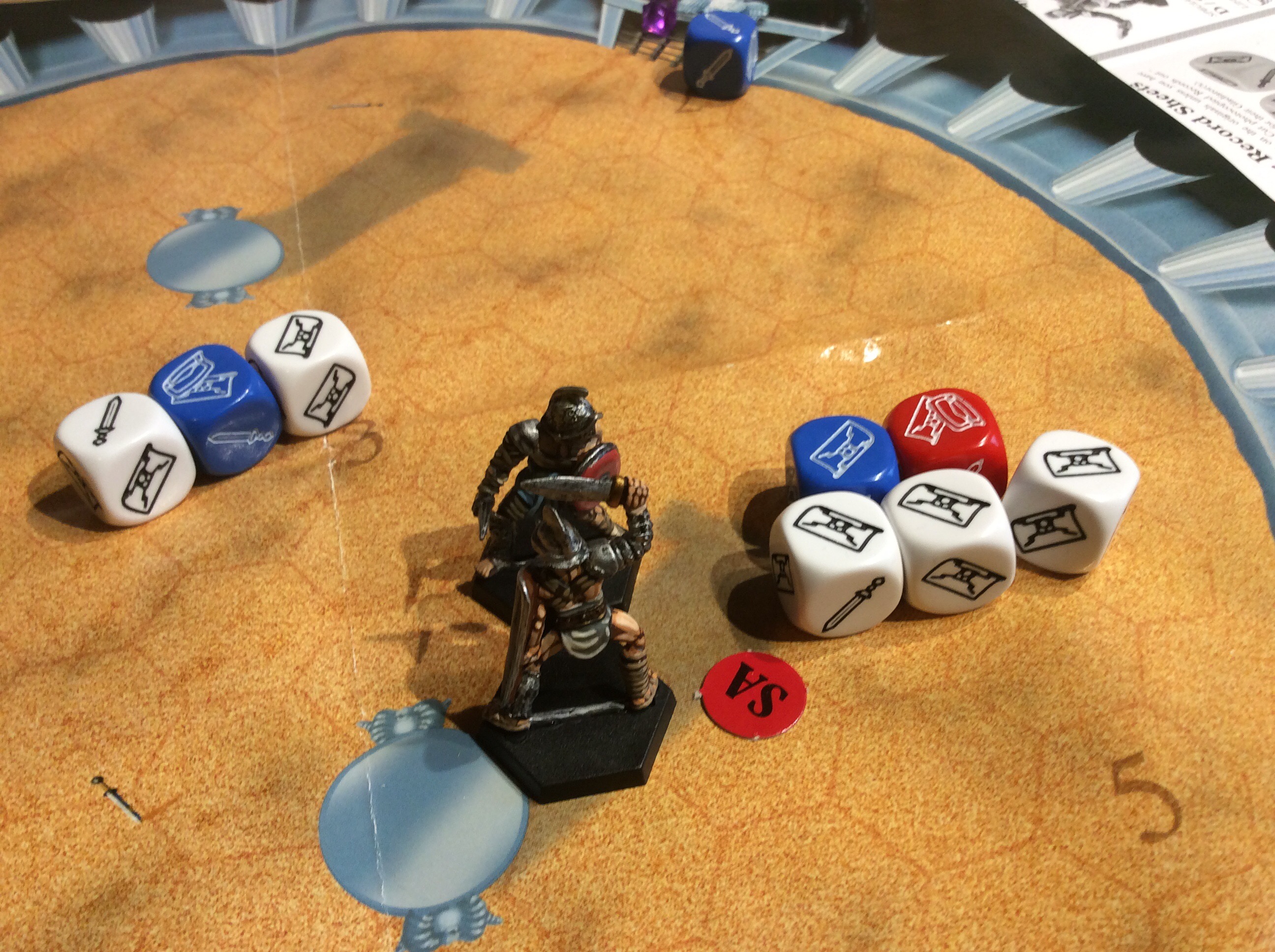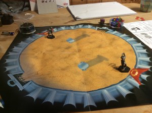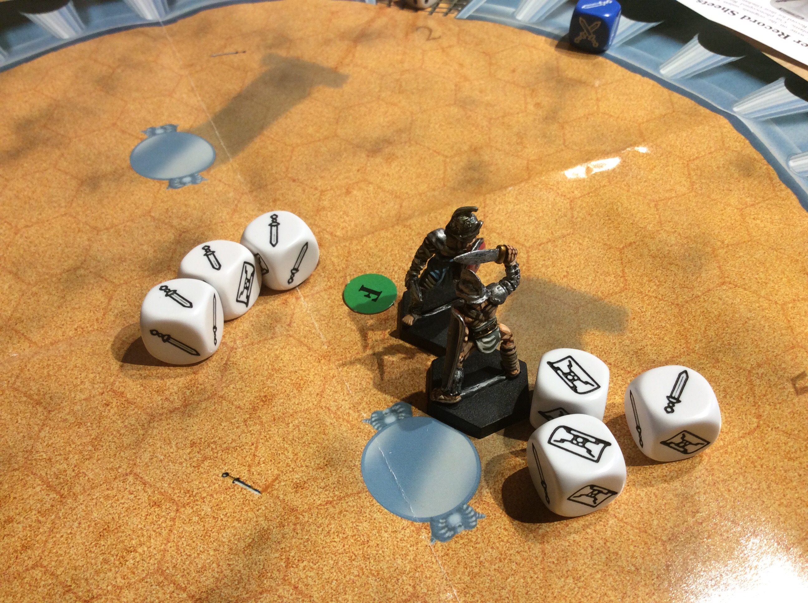 Marcus then took his turn and advanced quickly. He was lucky and managed to go first. He rushed at Caladus and used a special action to increase his chance of hitting which failed miserably. Caladus allowed the blows to connect with his shield and retaliated. Because of the savage attack he had undertaken Marcus had to take whatever Caladus threw at him.