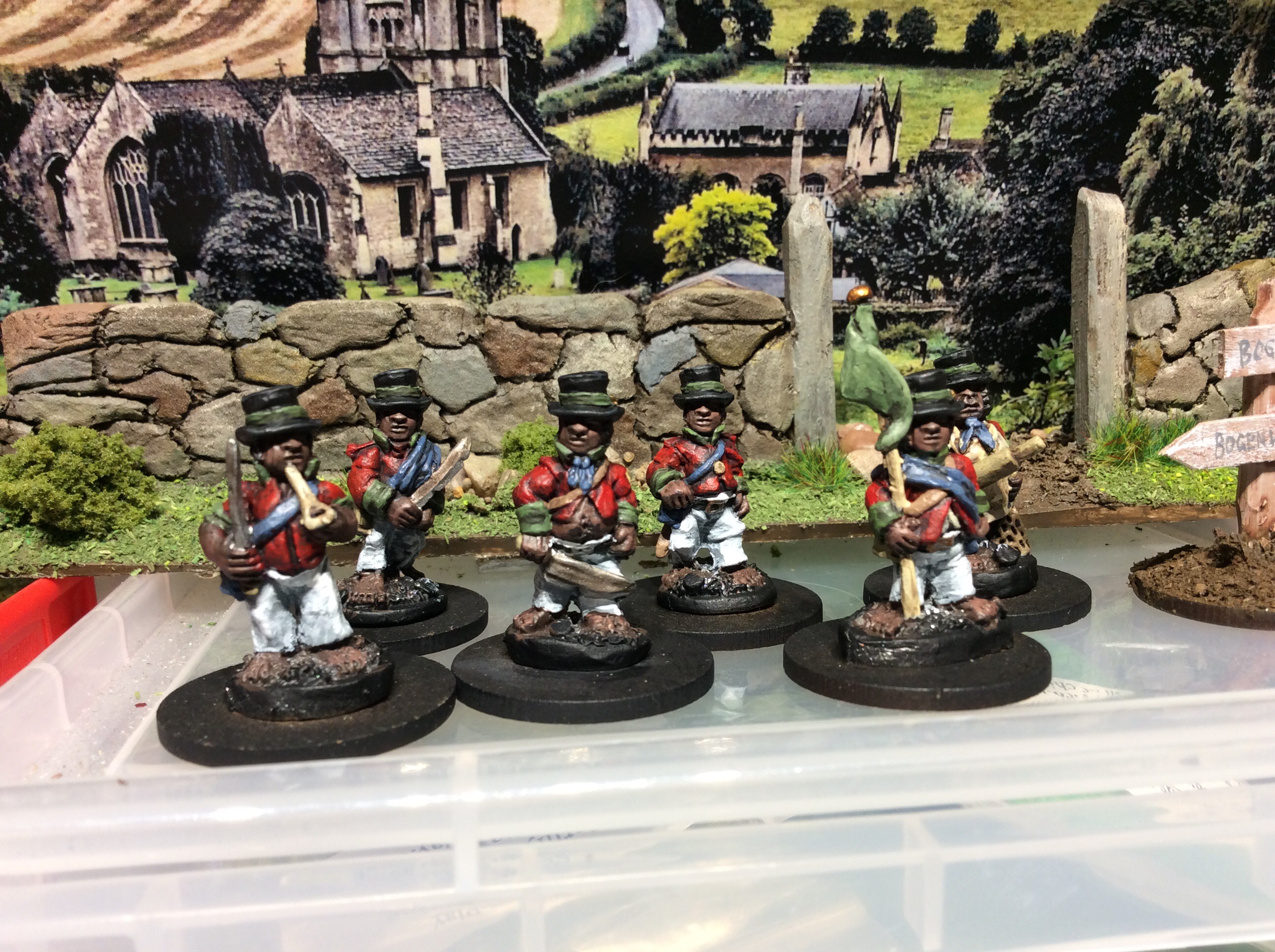 I love these little guys. Once again really great to paint. Some tricky flash to get rid of between the legs, nothing a modelling knife couldn’t get rid of. Still wondering whether to put a coloured band on the hat or whether to leave it black. The Foundry Bay brown triad has eventually been used as a skin tone. Probably had the paints 6+ years. I am rather pleased with the results. I can see I am going to have to get some more of the HEVC because they are awesome. Naming the individuals is going to be the tricky bit.