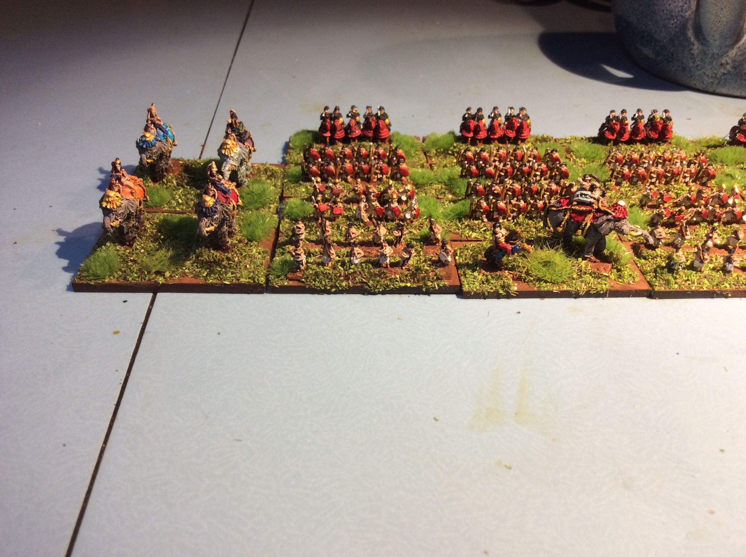 The one thing I noticed is that the infantry have blended into the bases now and the elephants and cavalry have jumped out a bit more. Weird optical illusion taking place there.