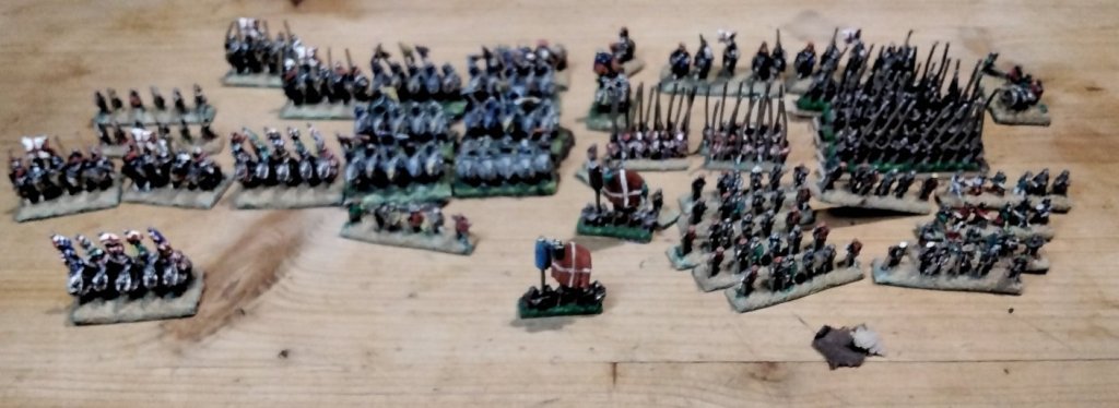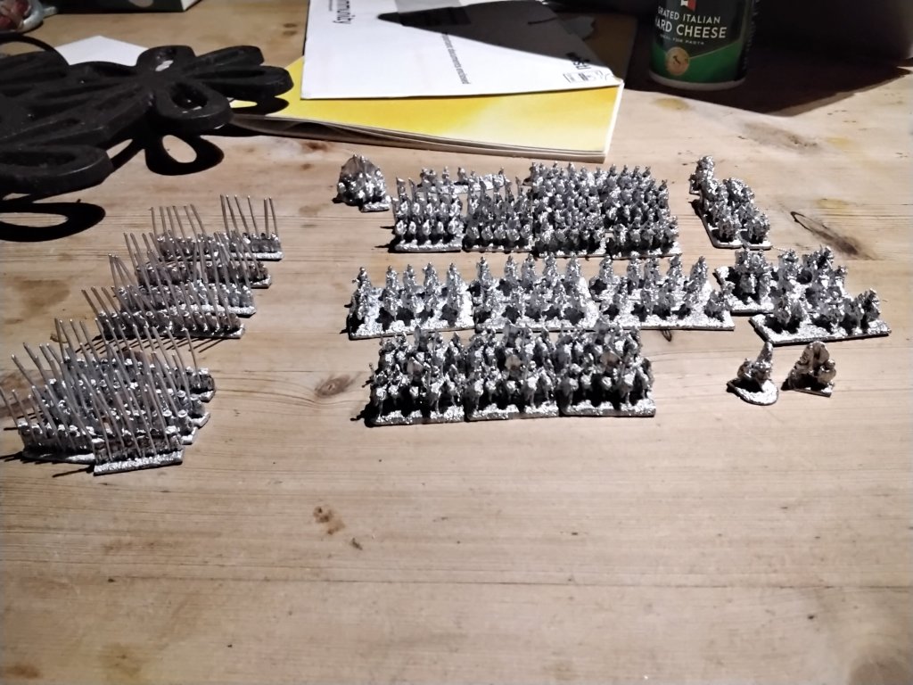The other thing I have been doing is working out a sort of army list for the Italian wars. I have ordered the Furioso supplement as it deals with this war and adds solo play… I did find an army in my 6mm ‘yet to do something with’ box…