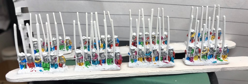 Since taking the above photo I also got the hats painted. They need to have the feathers repainted white and then some colour added. I can hopefully get these ones finished tomorrow. I will make a start on the Spanish tomorrow too. I have now printed another forty pike strips to add in the rear ranks. I will do another forty and see how I get on. Joe will probably need a pile more too.