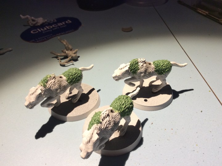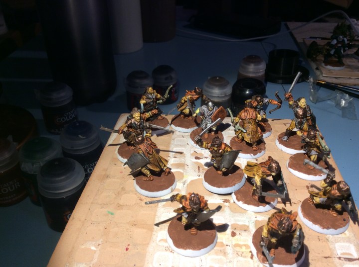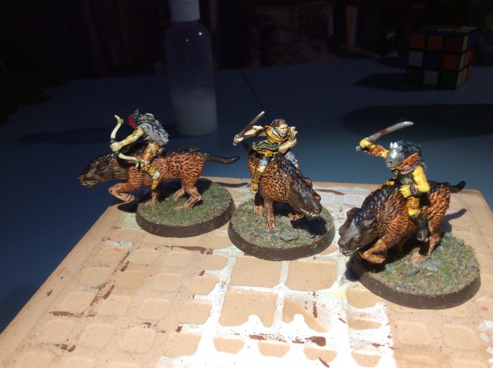 This is them all together. It was after I took this photo, I realised that the Wargs and original hero had the base edge painted chocolate brown… the rest I did black!