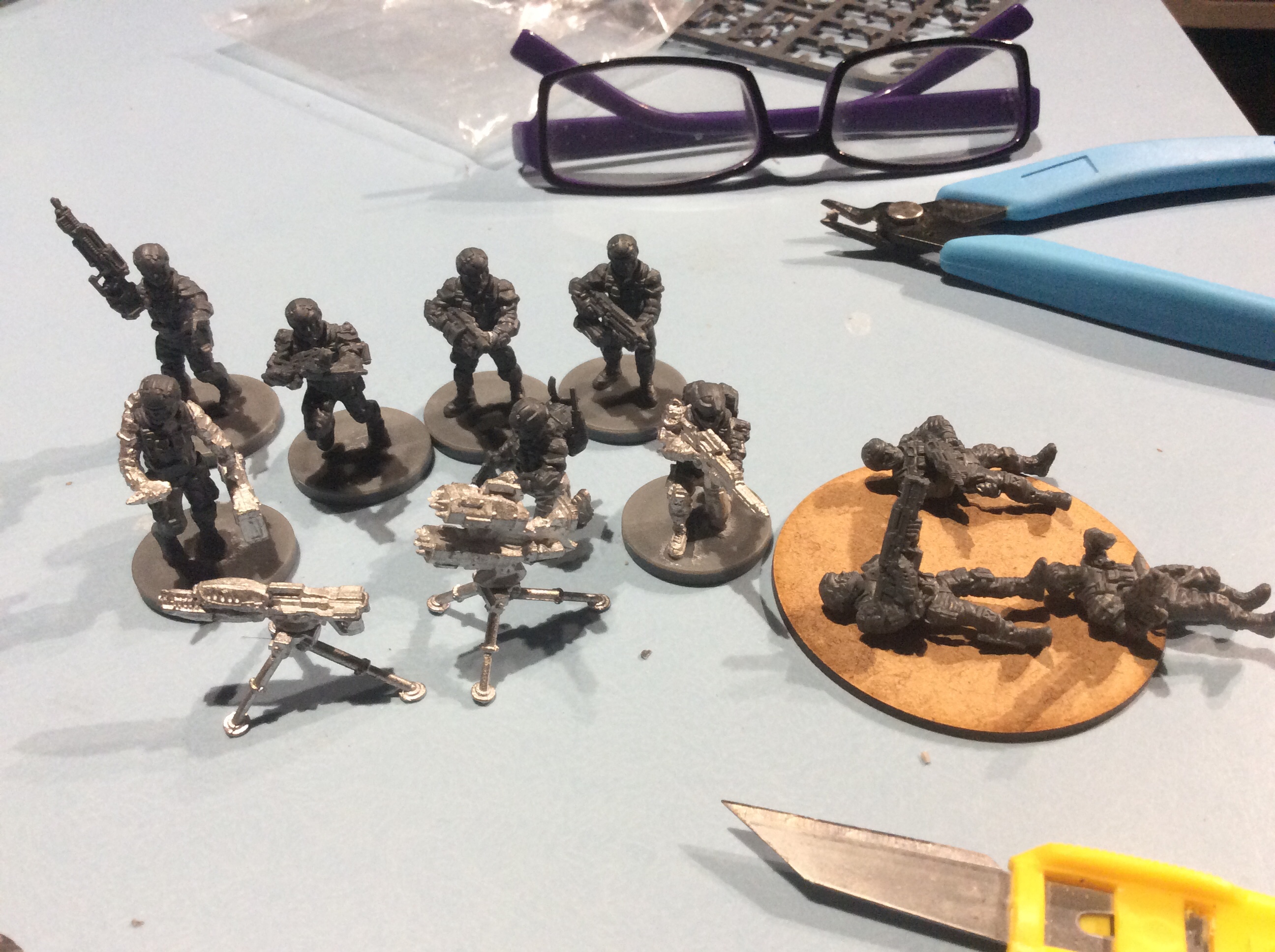 I also made a start on the Mantic Deadzone GCPS booster pack. Never have I sworn so much. Luckily there were only 10 miniatures as I reckon 6 heads pinged across the room to superglue themselves to various bits of furniture, curtains and perhaps the dog as no matter how hard I looked they never reappeared!