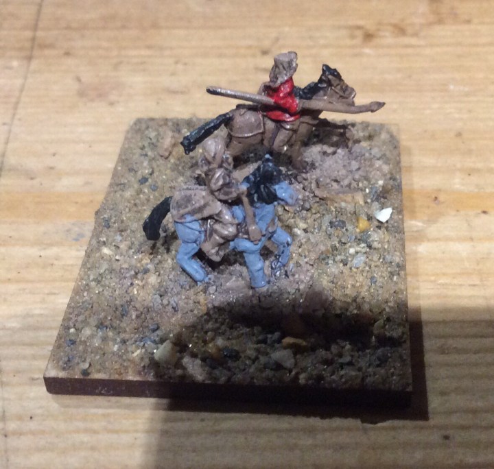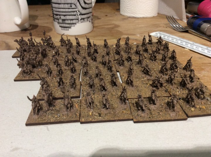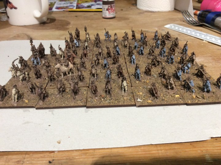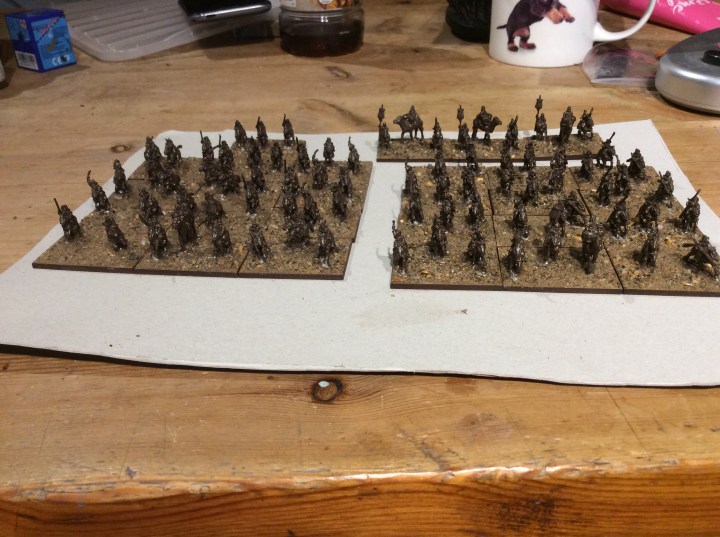 The paint is still wet so it looks I have missed some of the undercoat . Well at least I hope I haven’t missed an6! I will hopefully get a heavy brown dry brush onto them tomorrow, not to mention covering up any of the bases that are showing any metal.