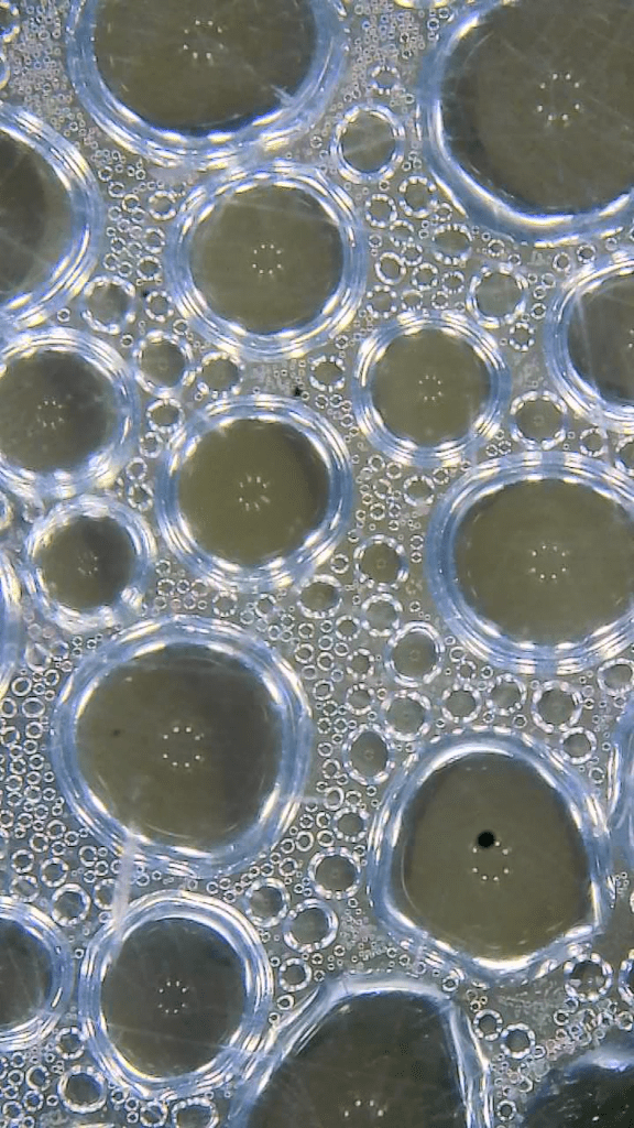 The circle of dots in the middle of each circle is the light from the microscope. I will let you know what it is tomorrow.