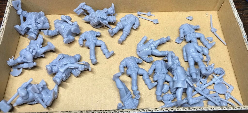 The one problem I have with the Highland miniatures dwarves for this project is the lack of young dwarves. I am making do with a couple of the artillery crew. The other mass of body parts is for my Reikland warband.