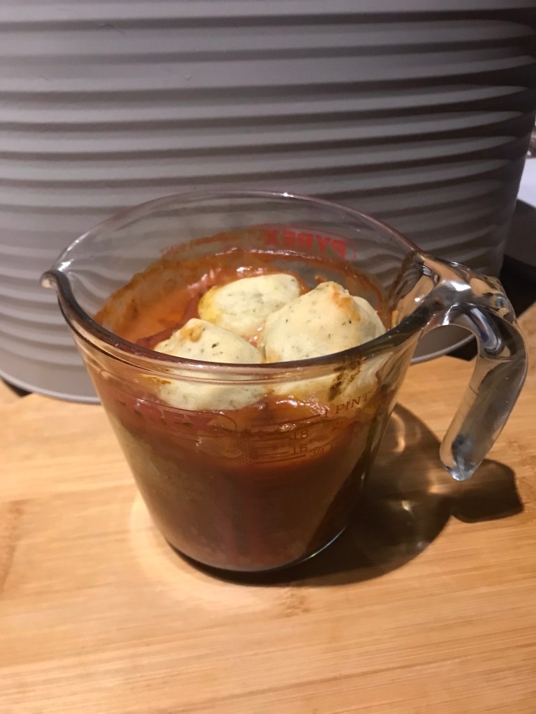 We had beef stew and dumplings for our evening meal today. My middle child is gluten intolerant so we made her a separate portion in the only thing we had that could go in the oven…