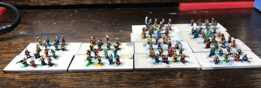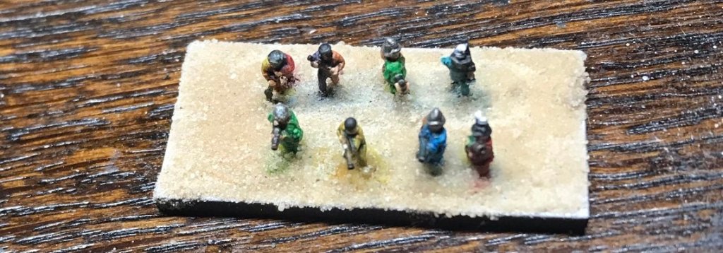 This is the final twelve bases worth painted and covered in sand. I have eighteen other ones in this state that will need the bases painting.