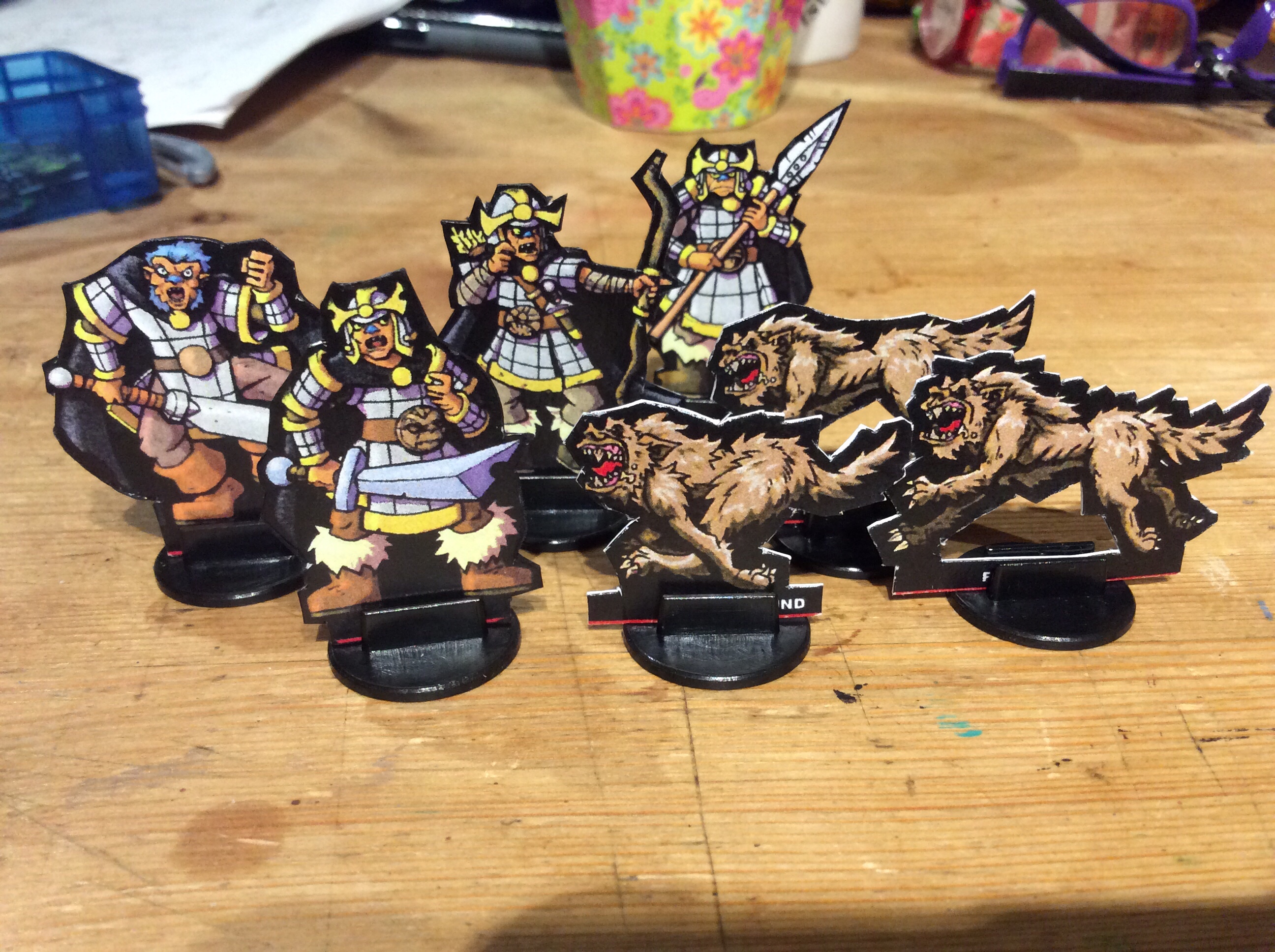 They are all card from the very talented Okum Arts. I used to use plastic and metal figures and these took up time to paint and space to store. One day I had an epiphany and I started hunting for flats. Eventually, after a fair bit of searching on RPGNow. I found a style I really liked. They were bright and colourful and a little bit cartoony.