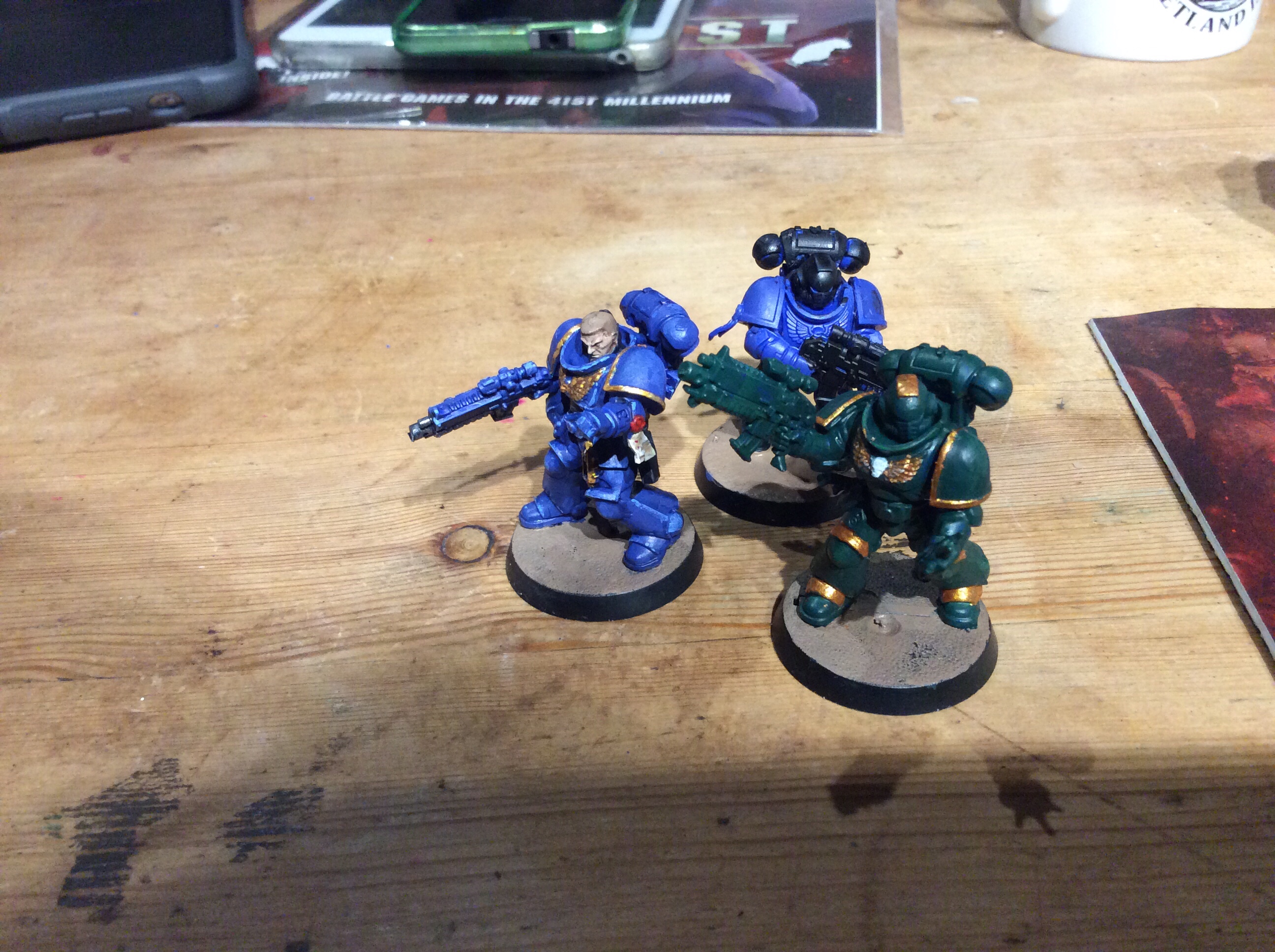 There is a scout on the left and a flamer on the right. The flamer Dude is missing his backpack thingy and I also shoved scout Paldrons on him too ( I will probably regret this).T