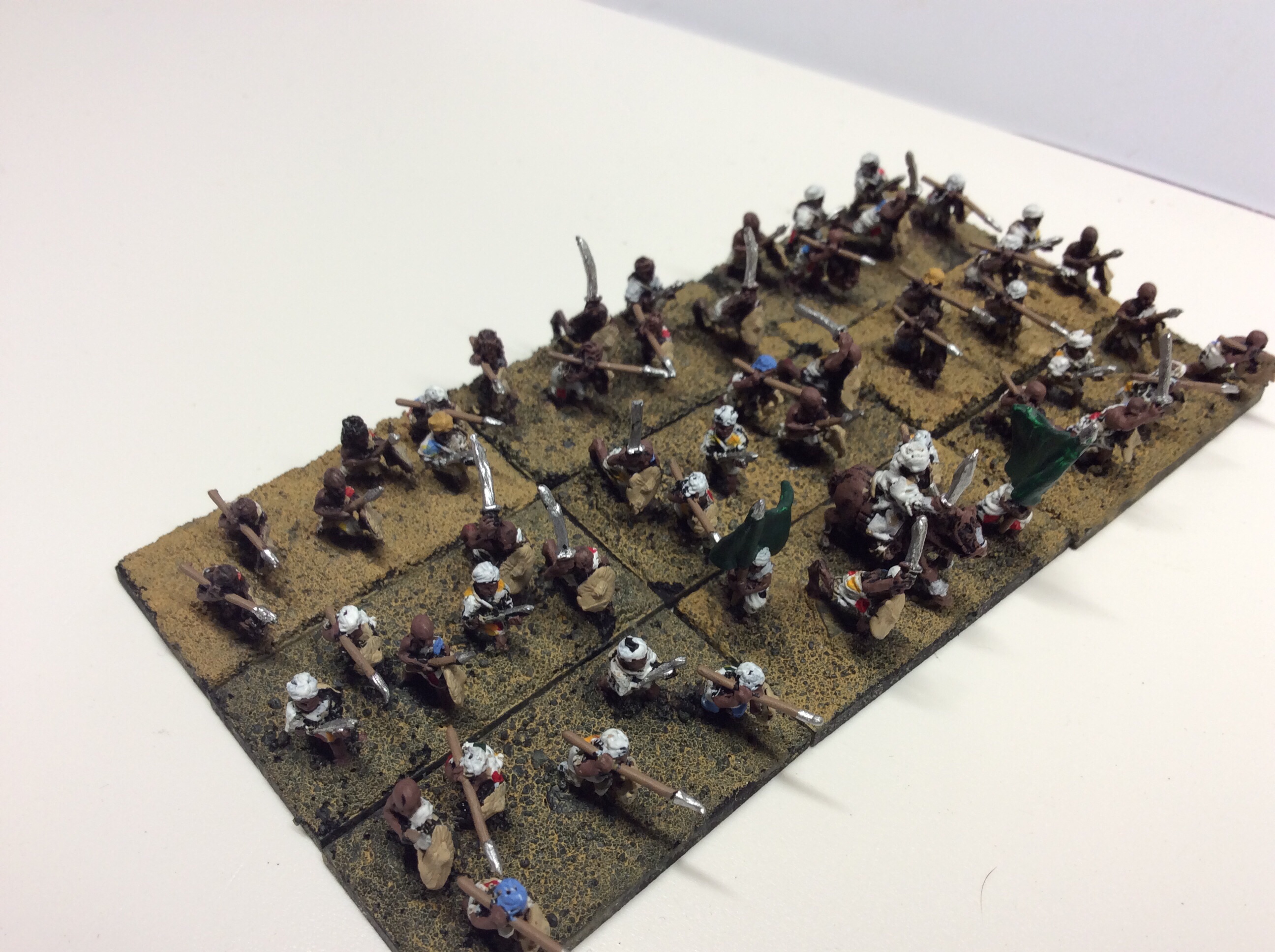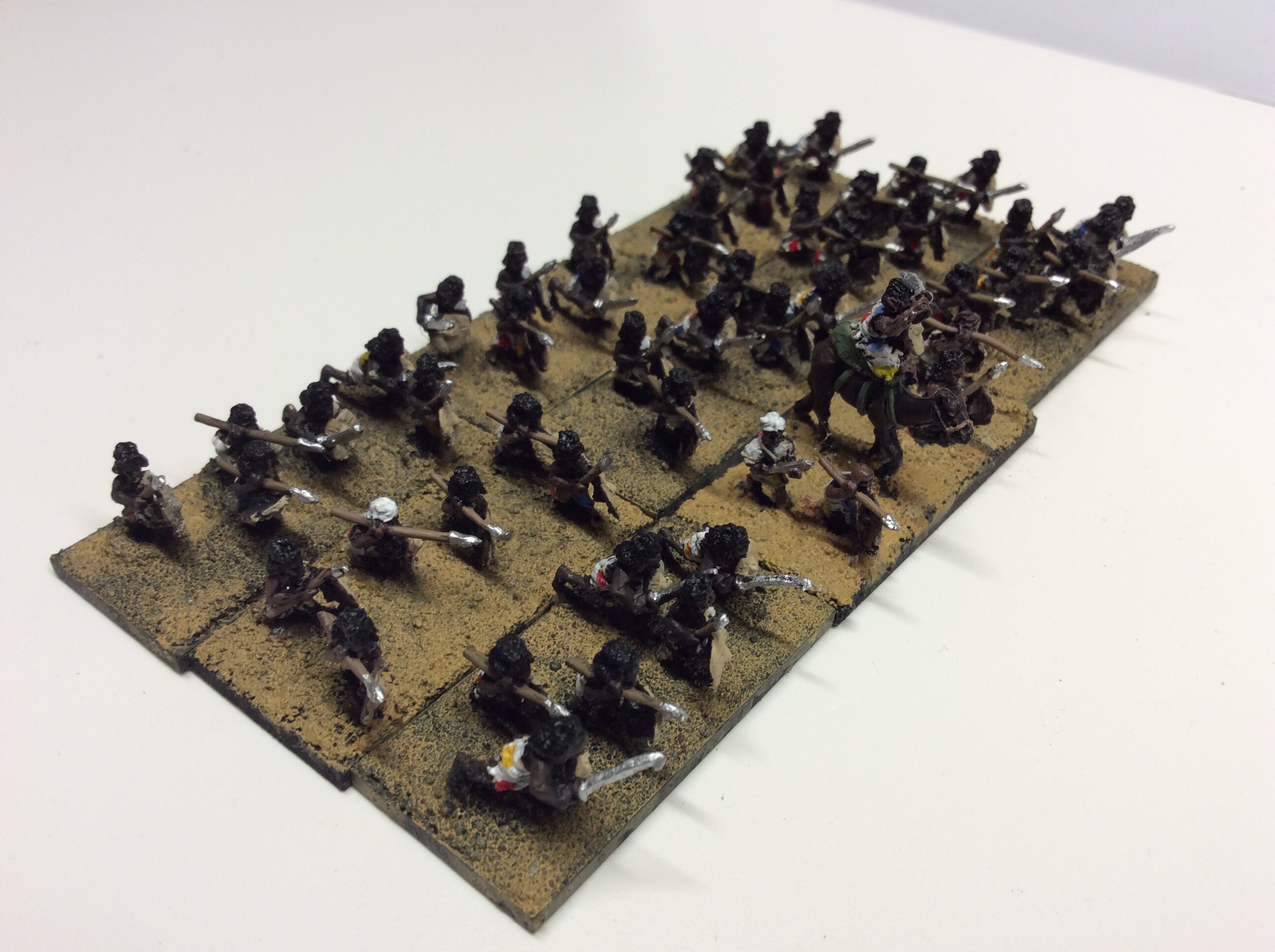 Our troops were an Anglo Egyptian force comprising the Durham’s, the Guards, along with a naval crew manning a gatling gun, protecting our right flank were the colourful gentlemen known as Bashi Bazouks. They carried more weapons upon their persons than was normal. To the left of the British forces were a mixed force of Egytians and Sudanese troops, with lancers and cavalry protecting the left. After we broke our morning fast the sun was already searing the sands. We set forth into the unknown, our target was a small wadhi where numerous vultures were circling. As we advanced a great shout came from our front and left flank as numerous enemy forces appeared as if out of the very earth itself. Their guttural war cries were, demonic as they bounded forwards, intent on our downfall.