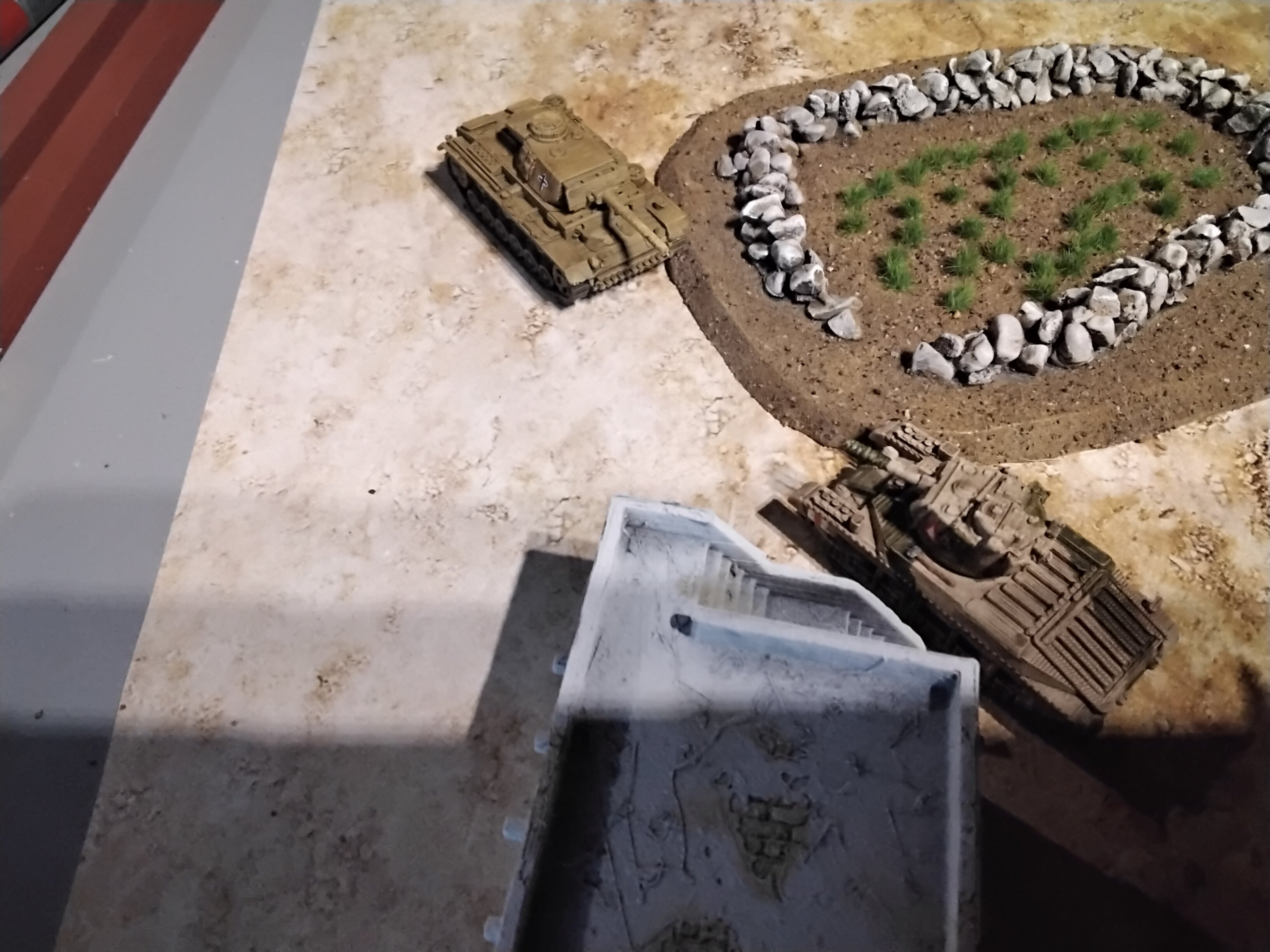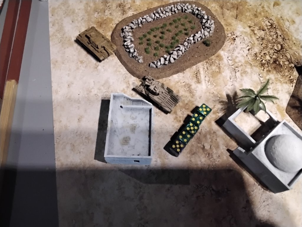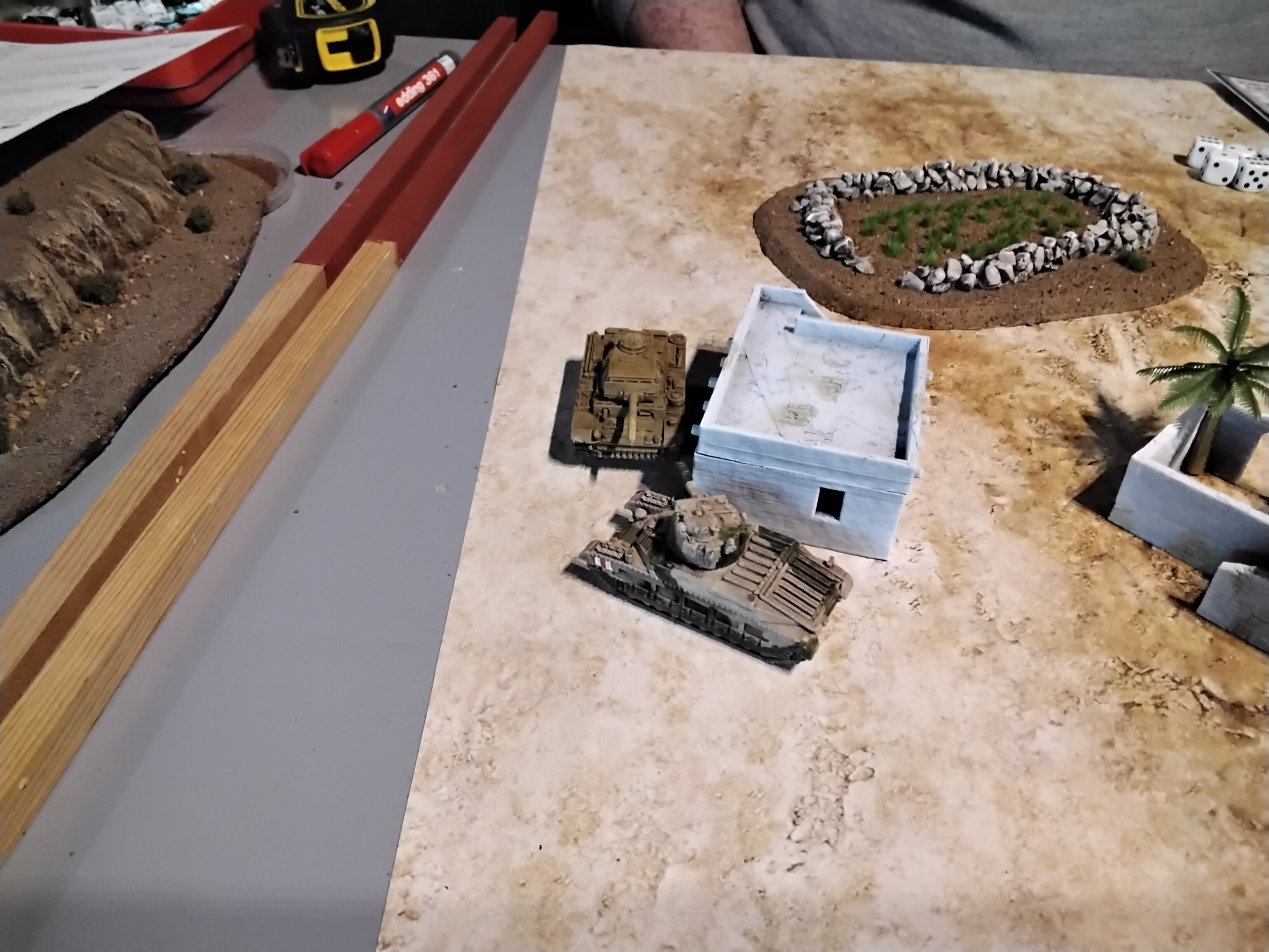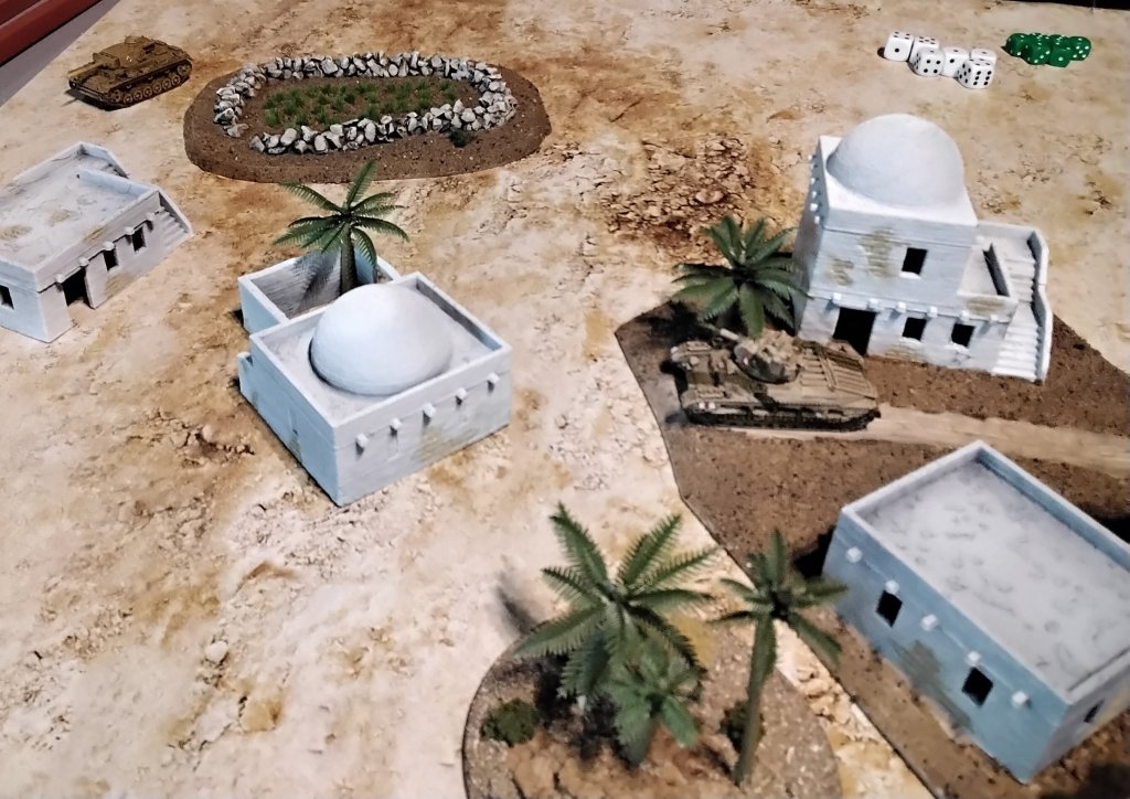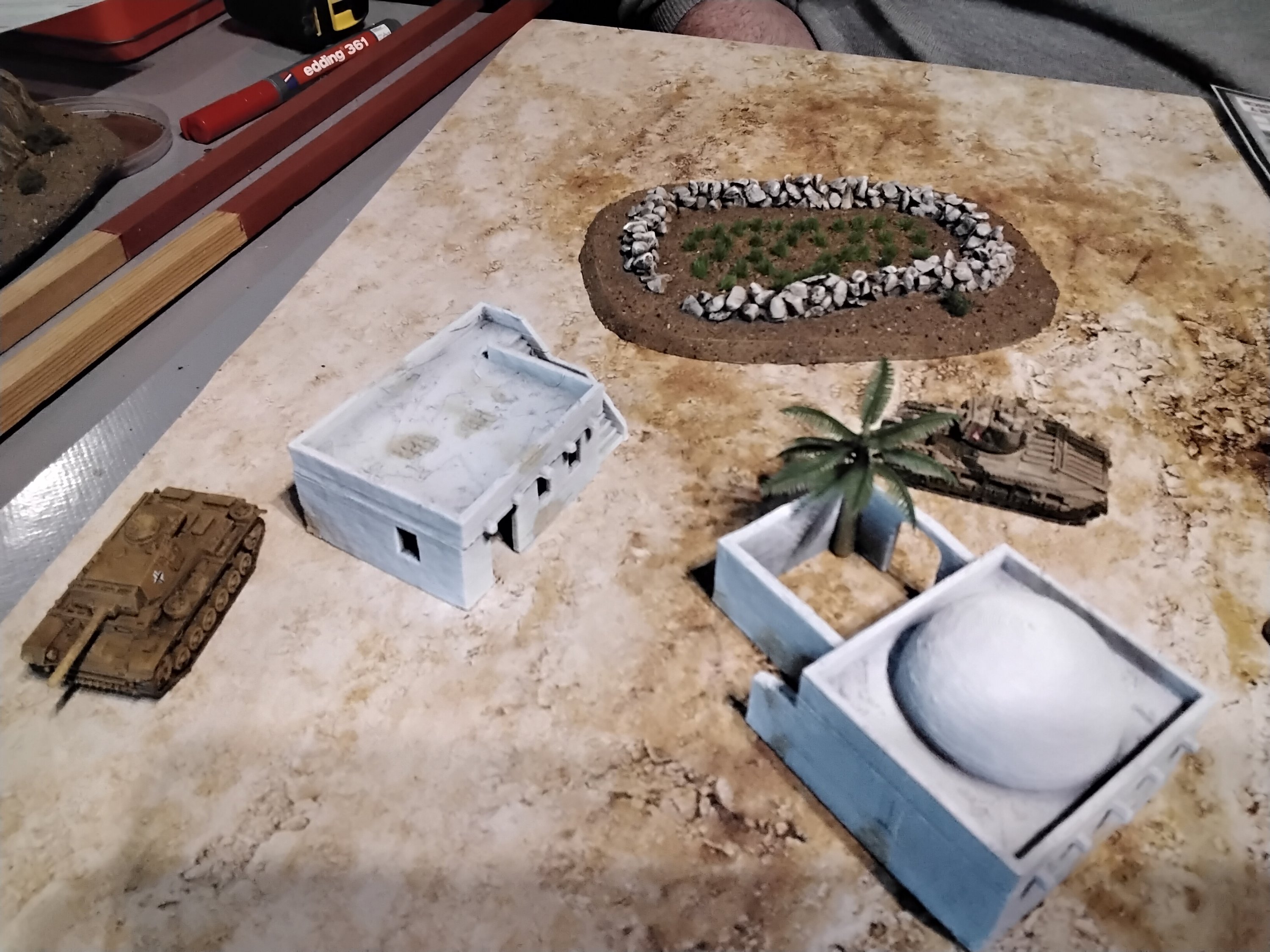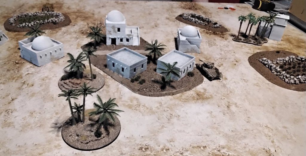 I reckon I am going to leave it with these 4. I also have the houses (some will be based together), I have hills and I have palm groves. There needs to be enough terrain to make it interesting but not so much that it is like street fighting.