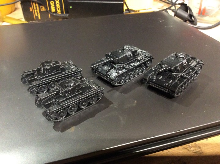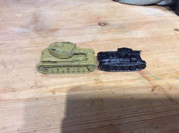 Things took slightly longer as the Somua in the middle had a bit of an accident. As I was stripping away the support I managed to pull both tracks off as well as the back off the turret. This is probably due to damp getting into the PLA causing it not to stick as well. I just need to find out what colours I have and what colours I need before I can get these painted.