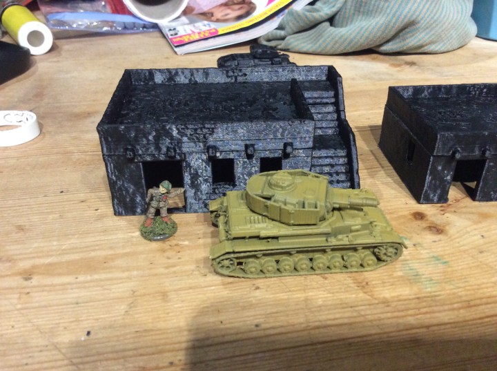 Hopefully my good lady will bring the laptop back with her soon so that I can start on some more Germans. The other thing I will need to print are some more roofs for the buildings. Hopefully I have some suitable desert colours for the allies.