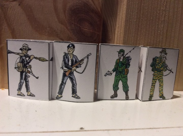 I then bought some 1/200 scale kit at a convention then kind of went off it again until, funnily enough, joining the Shetland club. I ran an RPG based on an Alpha team in the highlands of Vietnam. We had a hoot. Five players… a four man Alpha team and a Kit Carson scout. As all of my stuff had gone, I went for cardboard troops and flats for vehicles.