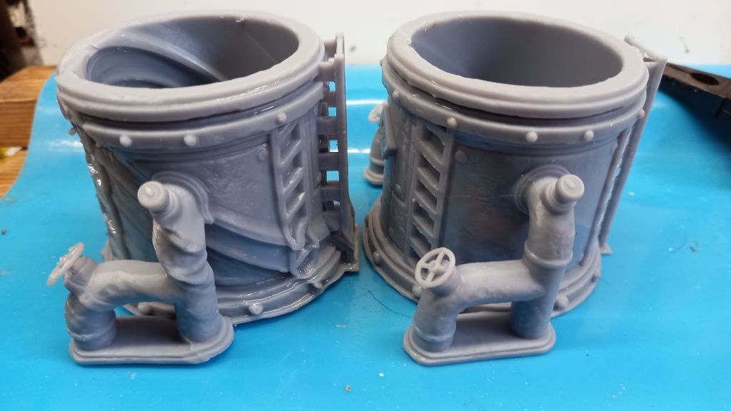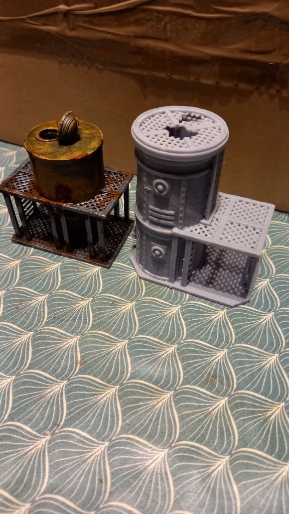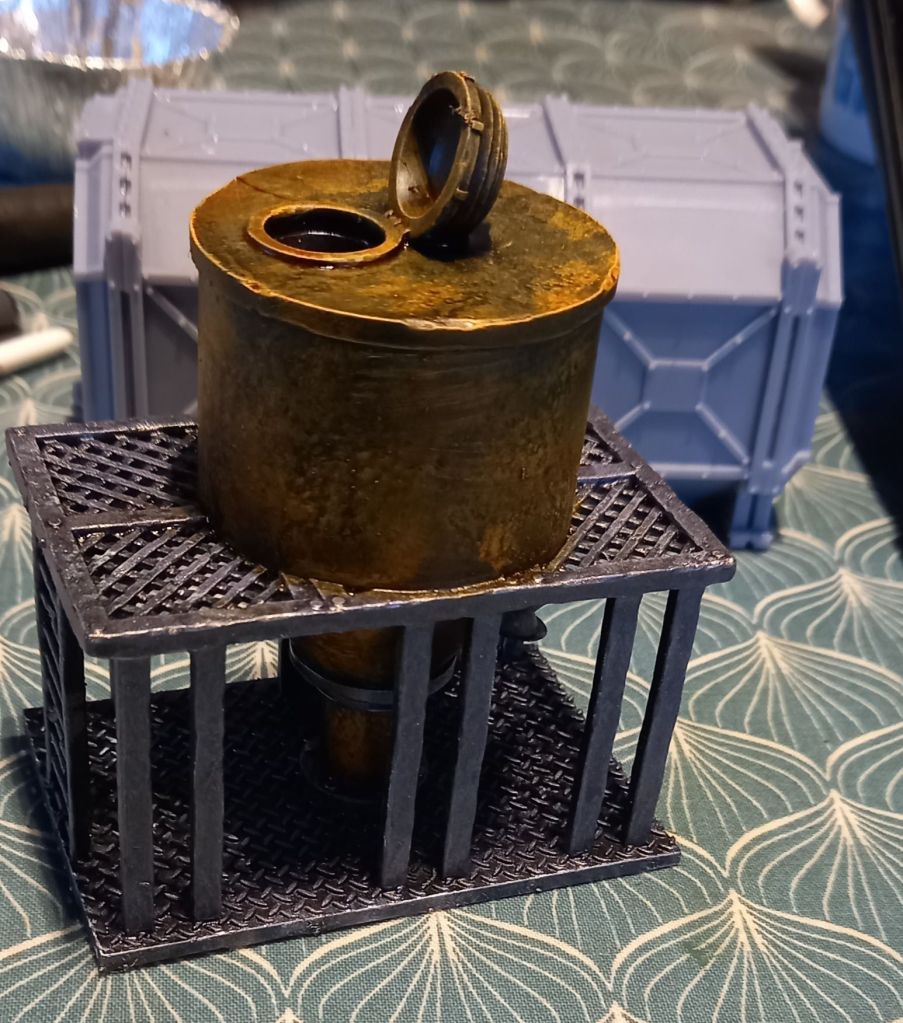 My original concept idea was that different containers would be colour coded, but after that initial idea i changed my mind, sadly after doing the above with a dry brush if red. I then remembered that the original industrial piece was yellow so that decided it. All would be yellow.